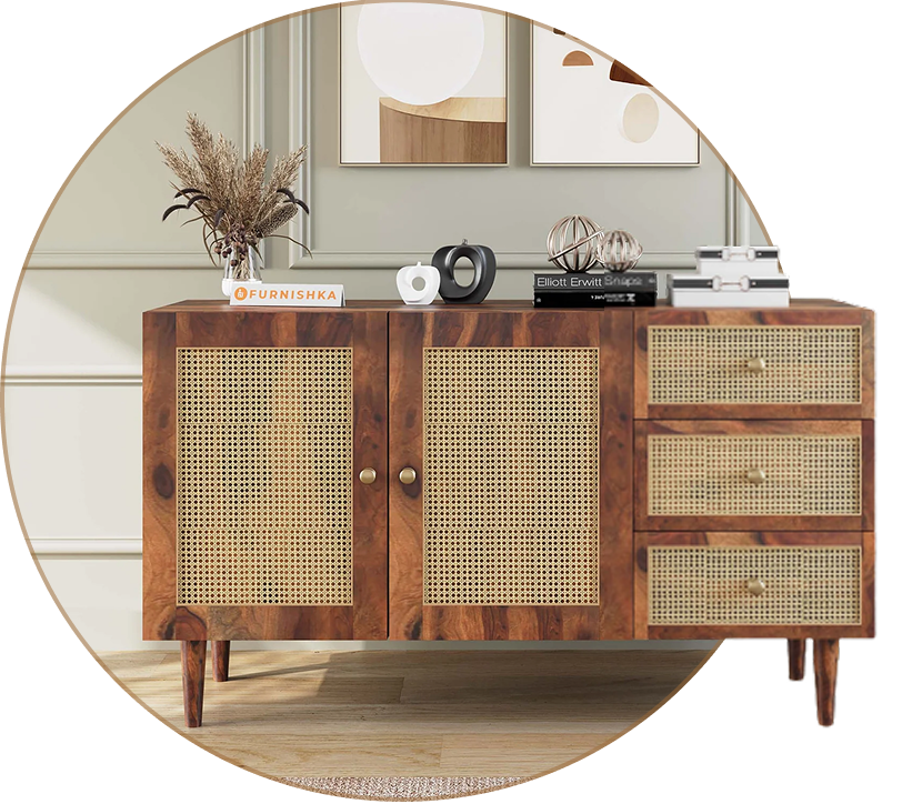Organisation meets elegance with Furnishka’s storage furniture in Bangalore. We understand that storage is more than utility — it’s about creating a home that feels calm, clutter-free, and beautiful. Every piece in our storage collection is designed with real materials like Sheesham and Teak wood, ensuring strength, durability, and timeless style, while blending seamlessly into your living or bedroom décor.