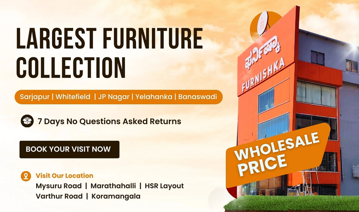 Walking into a Furnishka store removes the guesswork. You know exactly what you’re bringing home, with the assurance of real materials, wholesale-like pricing, and on-time delivery across Bengaluru.