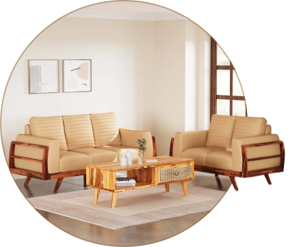 Our sofa collection offers something for every home, from solid Sheesham wood sofas with natural charm to plush fabric sofas, sectional sofa sets, sofa cum beds, and recliners Sofa. Each sofa is built with kiln-dried neem wood frames, sag-resistant foam, and breathable premium fabrics Sofa. With over 50+ fabric options, you can customize your sofa to suit your home décor and lifestyle.