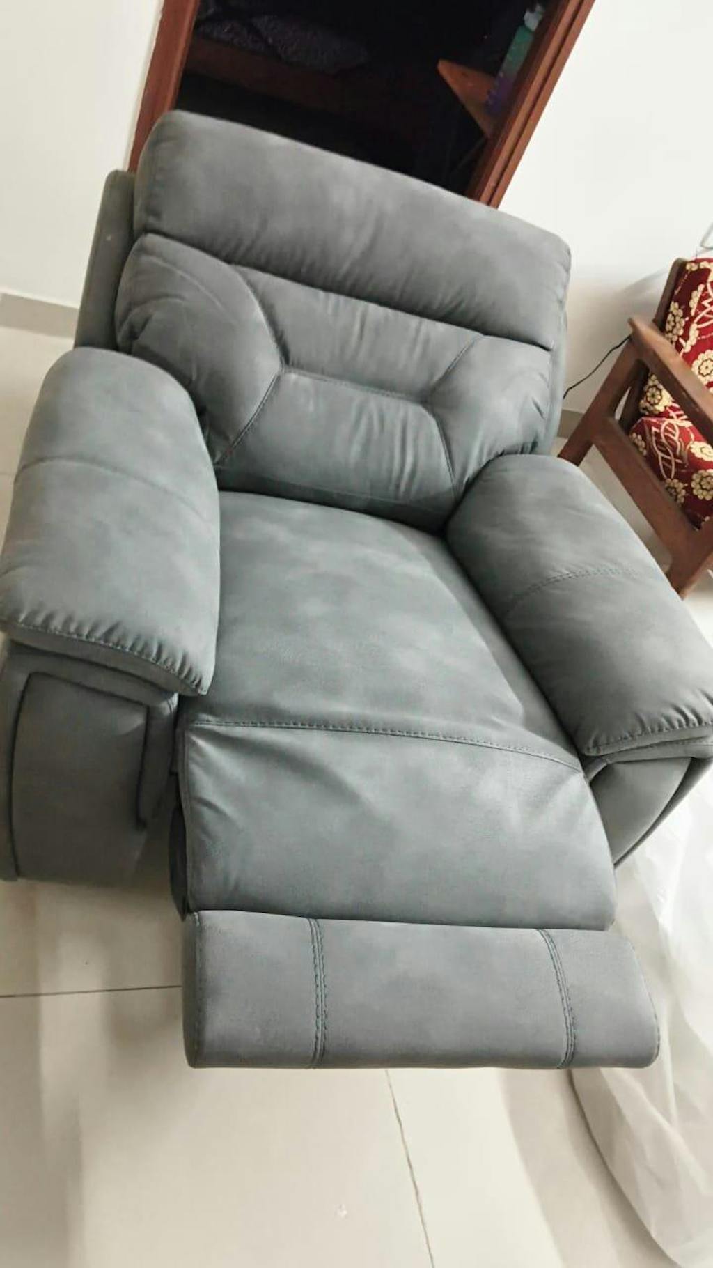 • Design: Modern recliner with plush cushioned curved armrests and a subtly tufted backrest