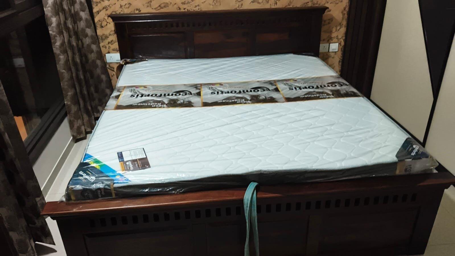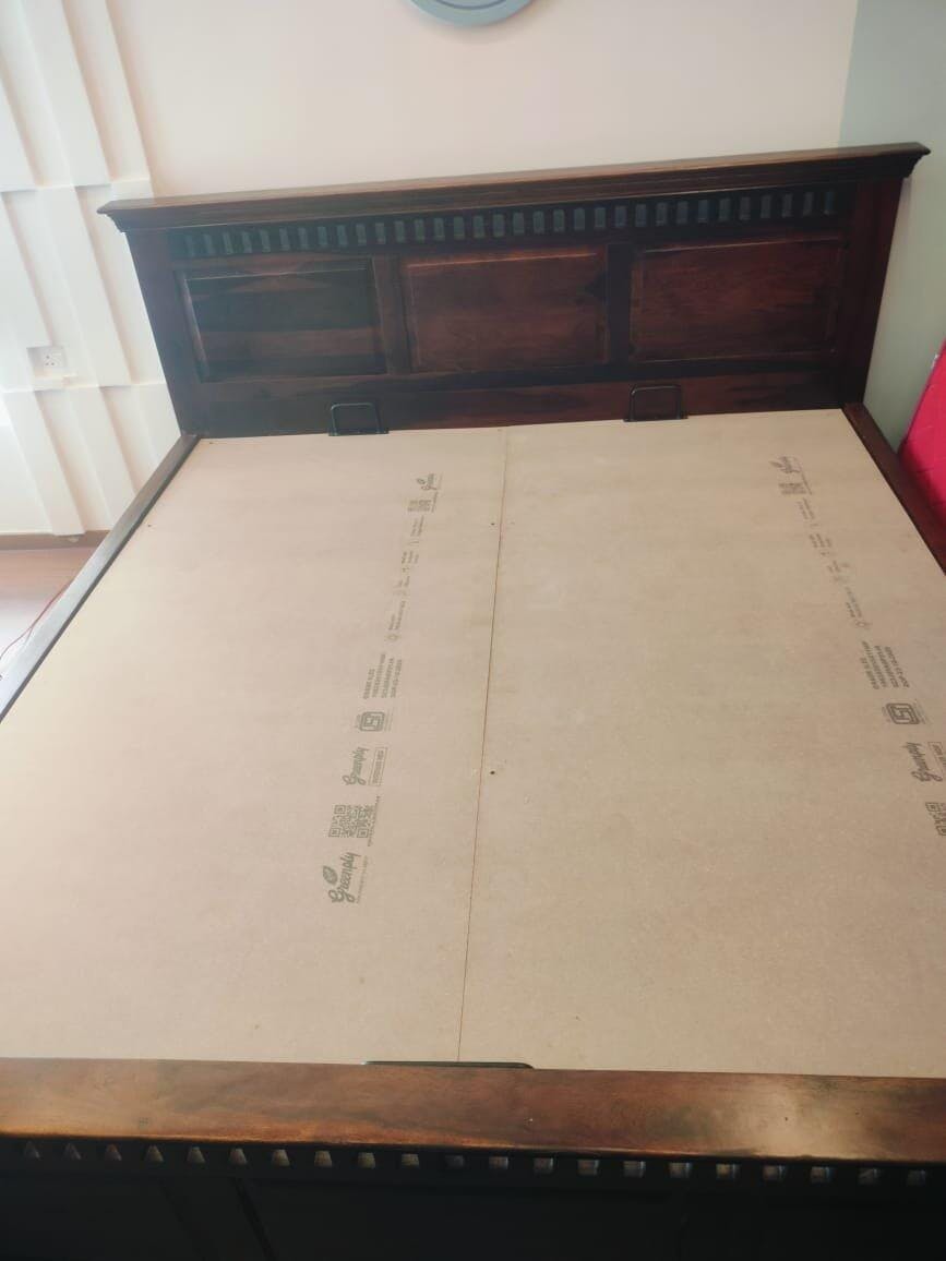 This king-size bed stands out with its rich wooden finish and elegant design. The premium hydraulic storage system is spacious, smooth, and expertly crafted—combining generous size, modern style, and outstanding functionality.
