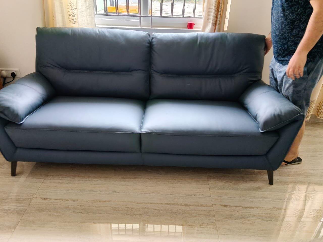 Suntory Leather 3 Seater Sofa - Ocean Blue Finish