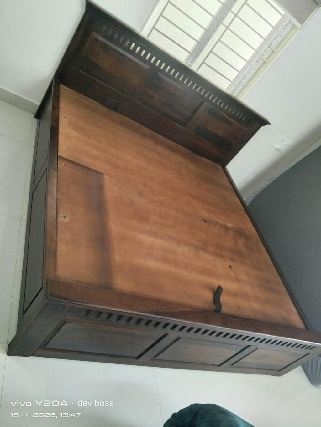 Adi Sheesham Wood Bed with Hydraulic Storage - Queen Size