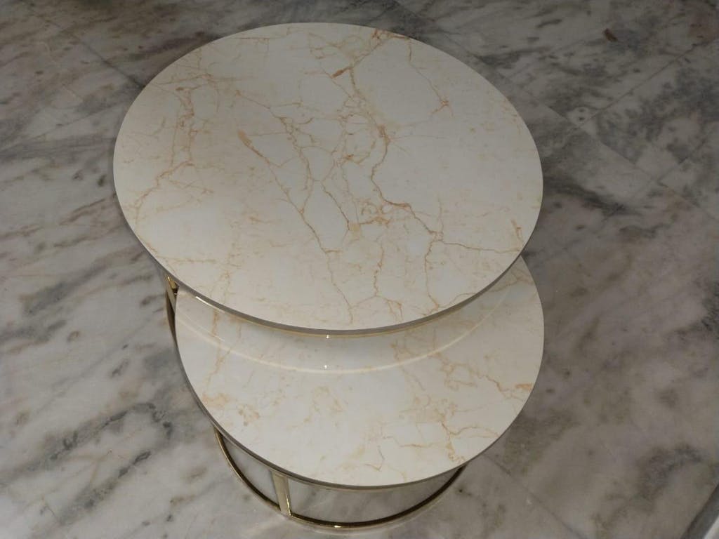 EthnoGlow Sagra Nesting Marble Side Table Set of 3 in Black Finish