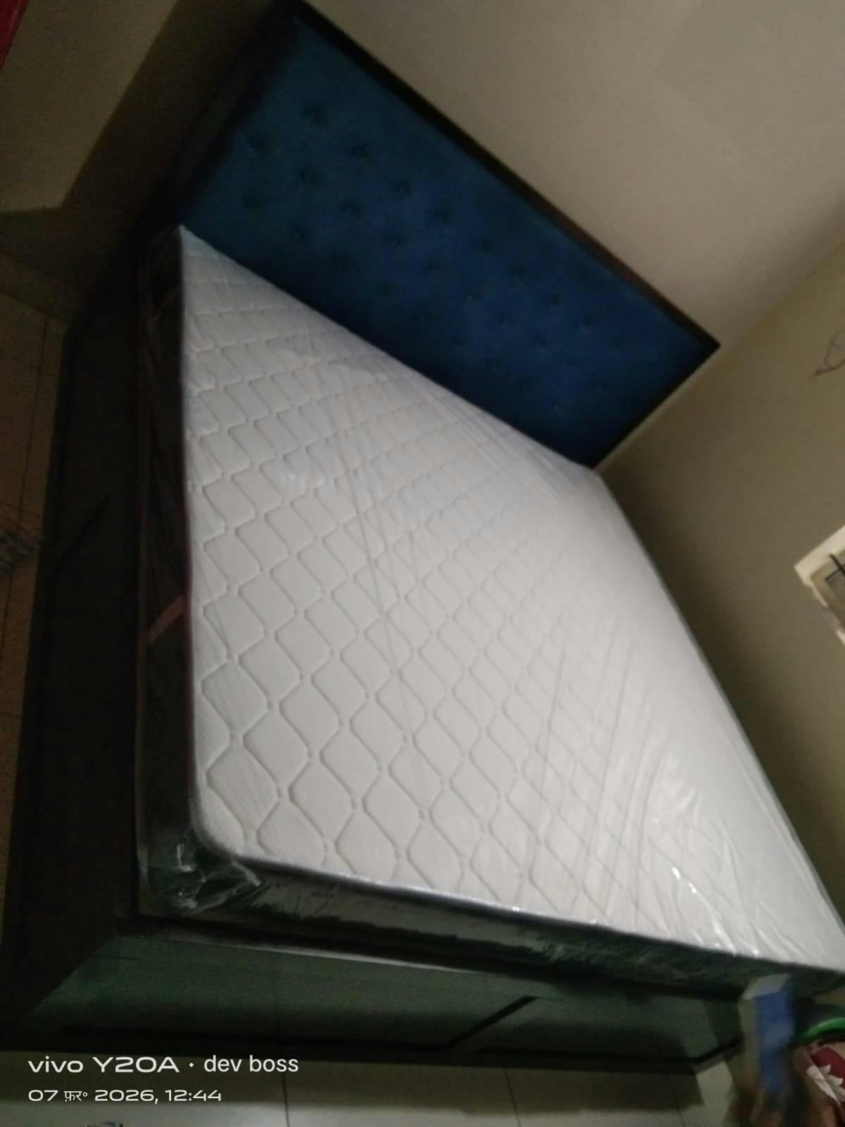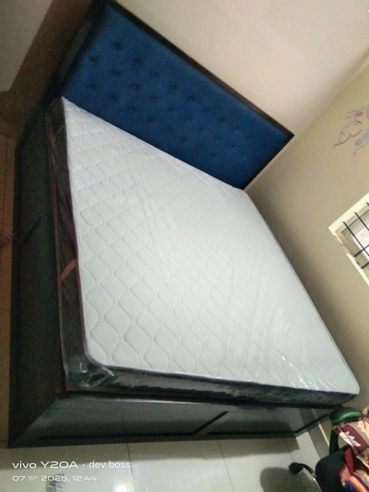 • Design: Rich-brown Sheesham wood frame with soft, upholstered headboard with a grid-style button tufting