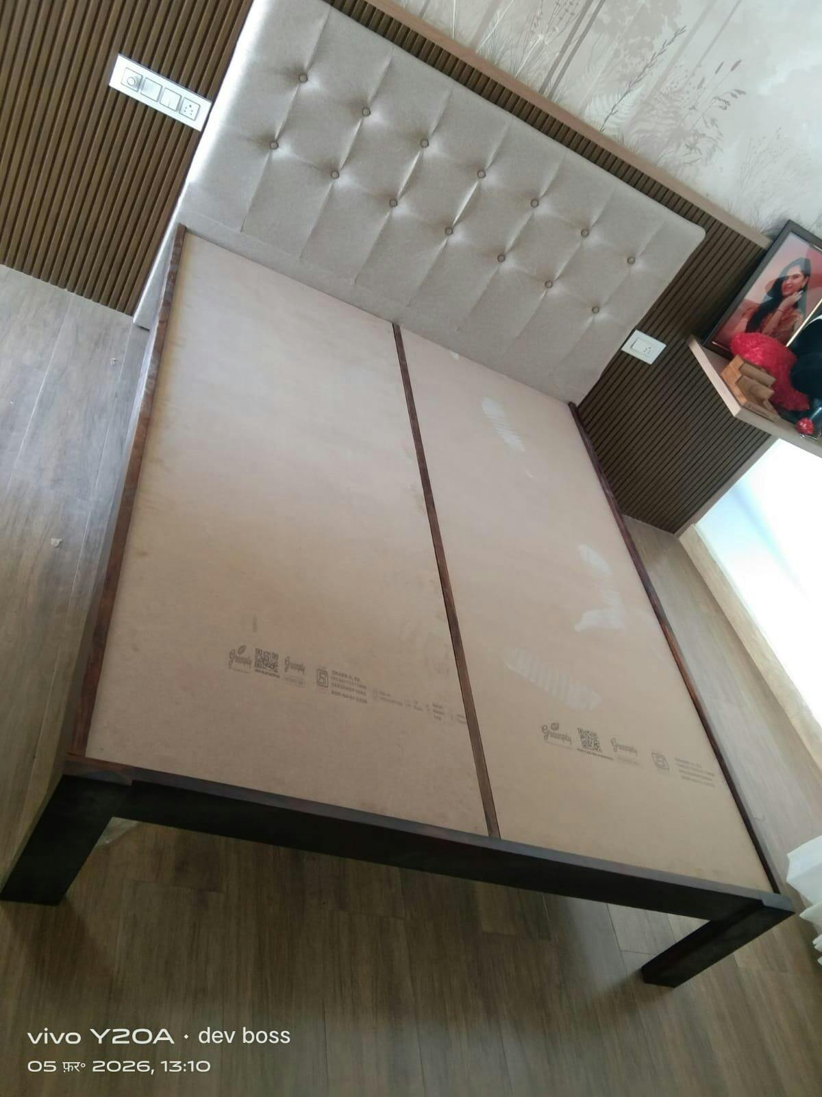 Irene Sheesham Wood bed with Upholstered headboard Non Storage King Size