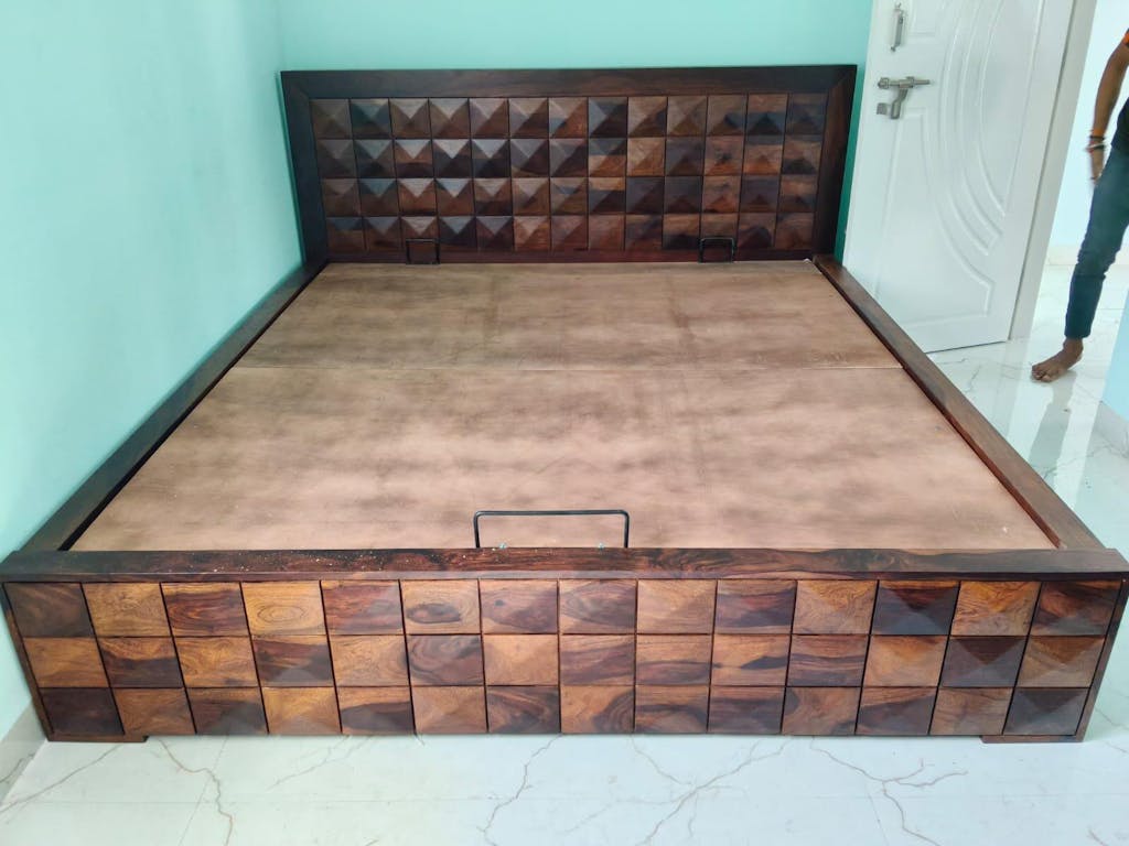 The Nova Bed features real sheesham wood with a striking 3D pattern and lifetime termite warranty. Designed for stable, noise-free rest, with storage options. Available in king and queen sizes.
