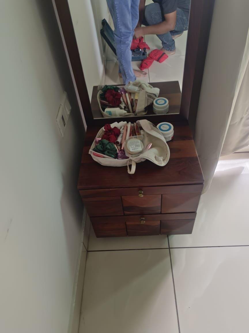 The Nova Riva Dresser offers convenient storage behind the mirror, making it ideal for compact bedrooms. Its spacious internals easily accommodate tall bottles. The countertop provides ample space for storing essentials within reach. The 3D diamond pattern on the facia adds texture and character while showcasing the natural Sheesham wood grain.