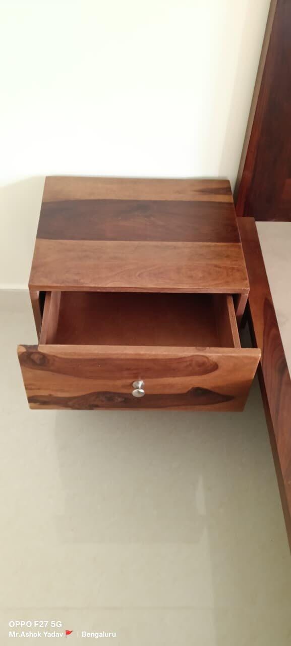 - Design : Mid-century bedside table with a single drawer featuring a plain Sheesham wood facia.
