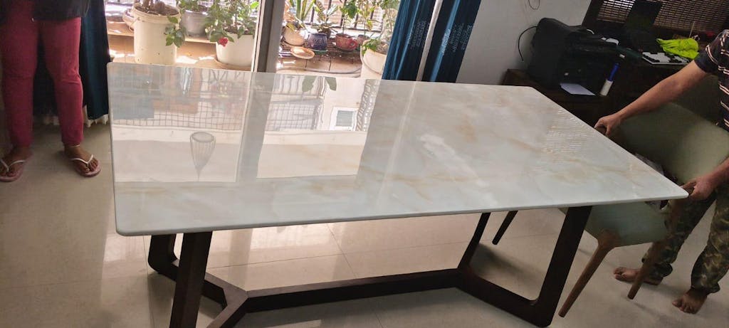 The Vetra dining table is warranted against manufacturing defects in its solid wood and marble components, with a lifetime termite warranty