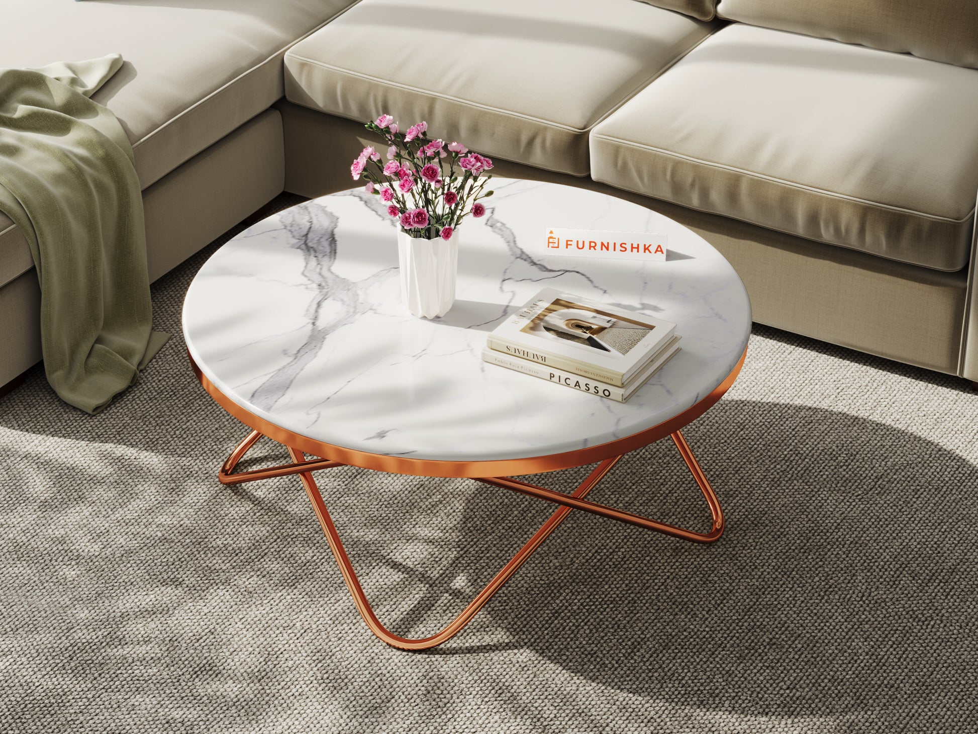 Clos Coffee Table with Quartz Marble Top in Rose Gold Finish