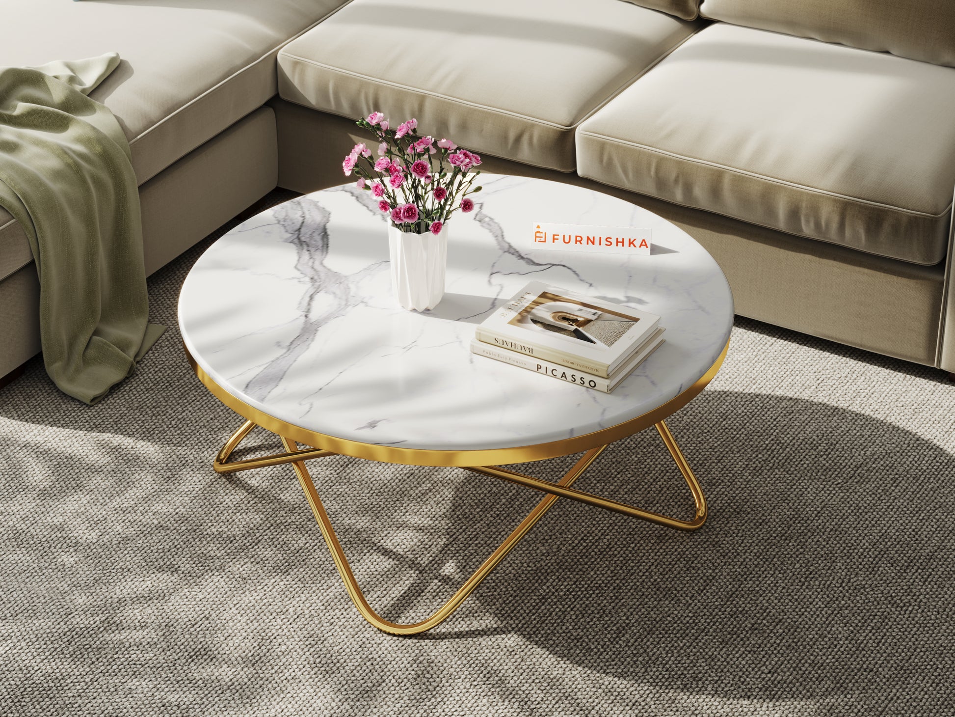 Clos Coffee Table with White Engineered Marble Top in Gold Finish