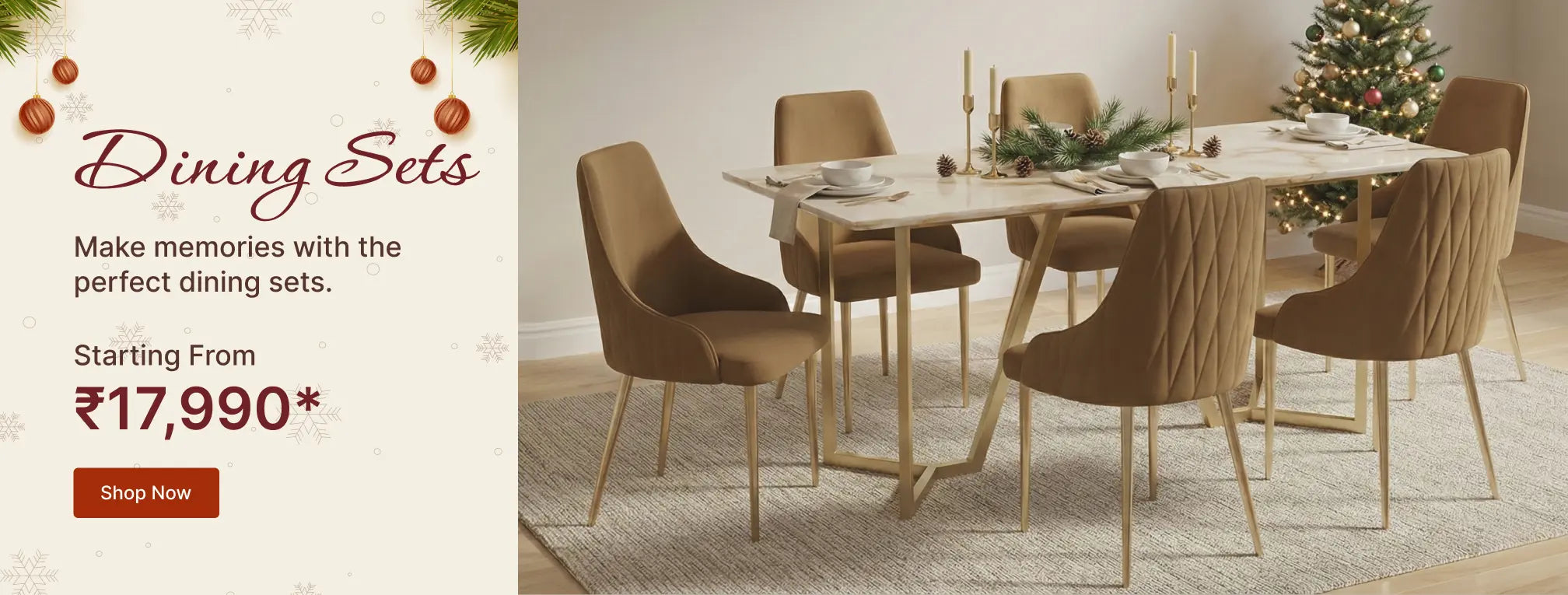 Visit our stores in Whitefield, Banaswadi, Sarjapur, and JP Nagar in Bengaluru, or shop online to explore our wide selection of dining table sets that suit every home and lifestyle.