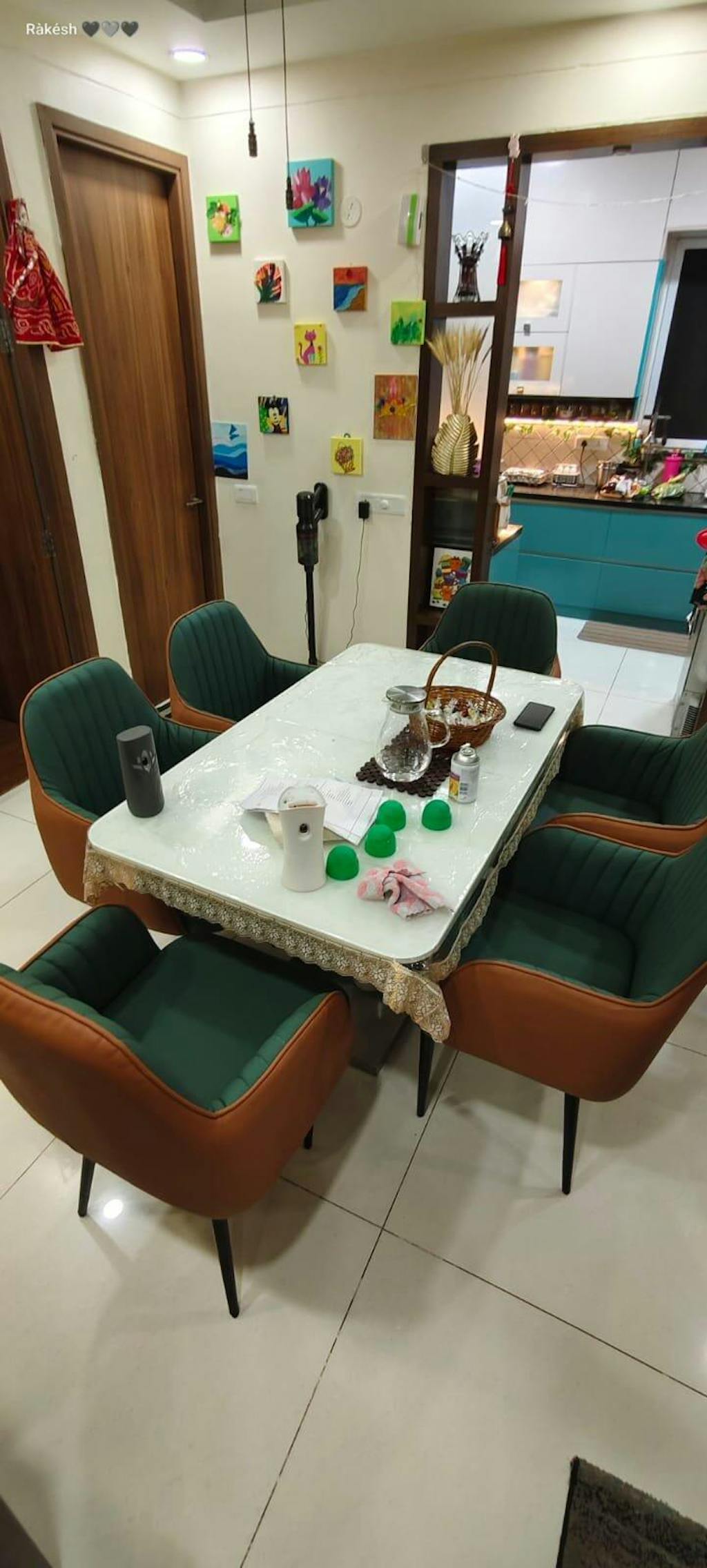 Olzaa 6-Seater Dining Set with White Engineered Marble Table Top And Nyla Chairs