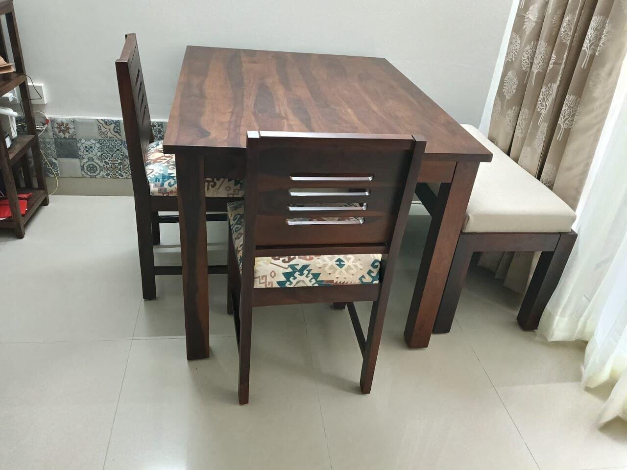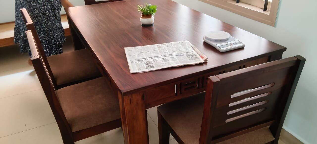 The Furnishka dining table set looks exceptional with its rich wooden finish and clean, contemporary design. The solid craftsmanship is evident in the sturdy table and comfortable chairs, making the space feel warm and inviting. The elegant detailing adds a premium touch. A perfect blend of durability, style, and functionality—highly satisfied with Furnishka’s quality.