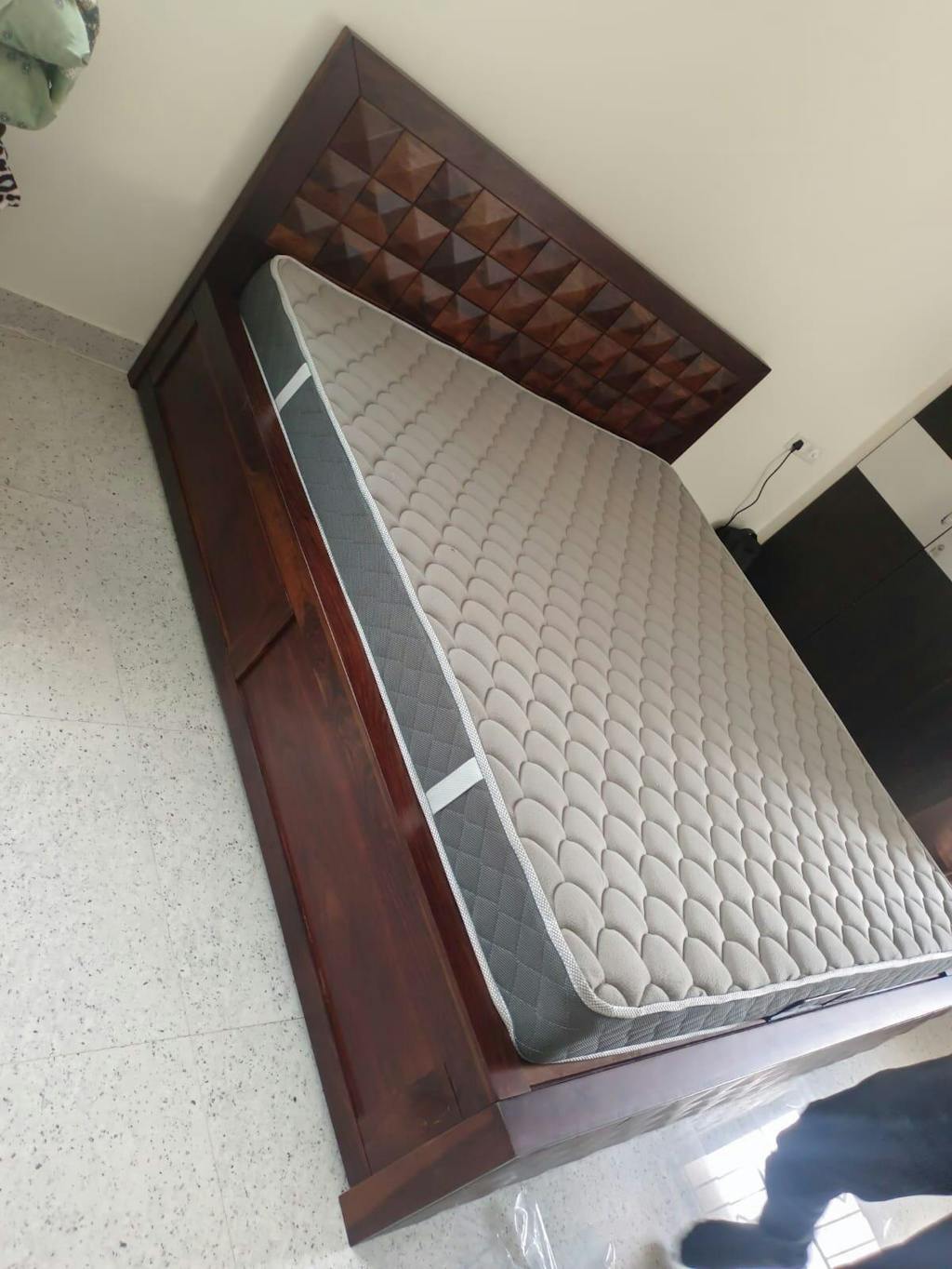 The Nova Bed features real sheesham wood with a striking 3D pattern and lifetime termite warranty. Designed for stable, noise-free rest, with storage options. Available in king and queen sizes.