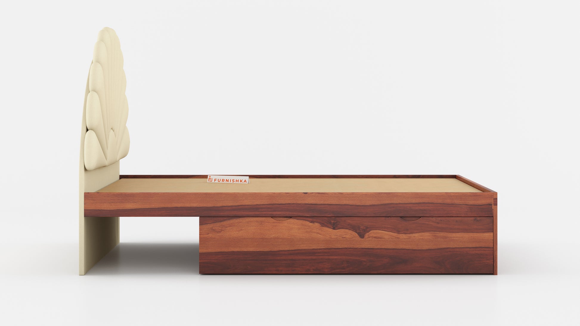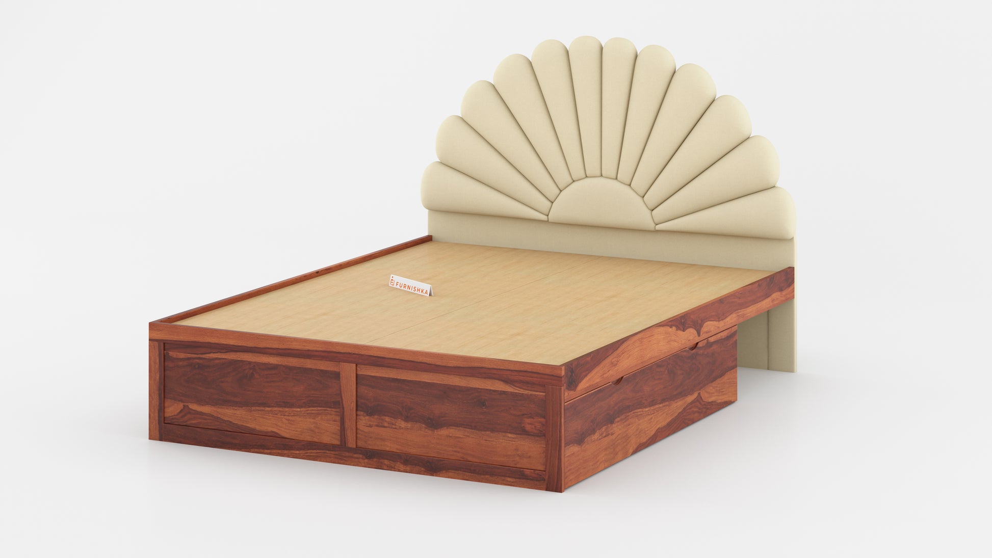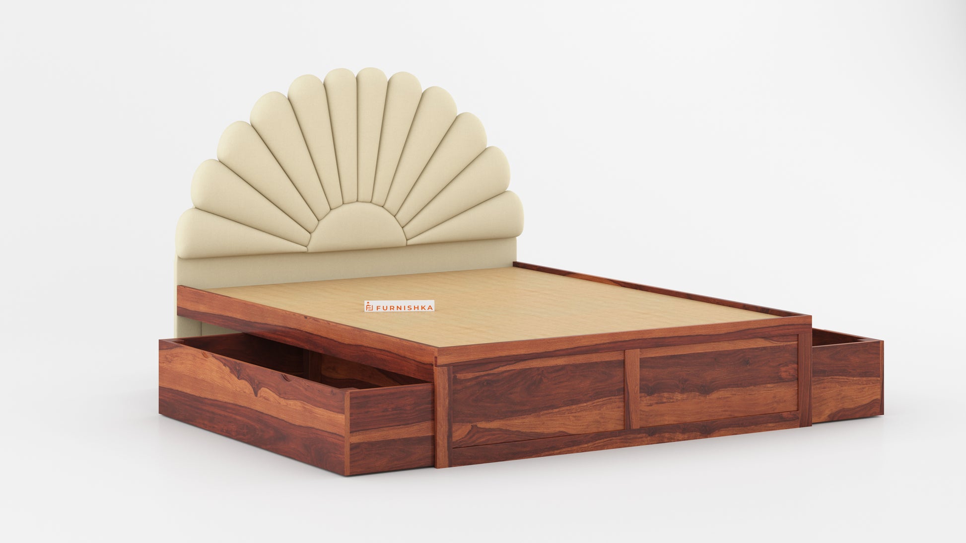 Satin Sheesham Wood bed with Upholstered headboard Drawer Storge Queen Size