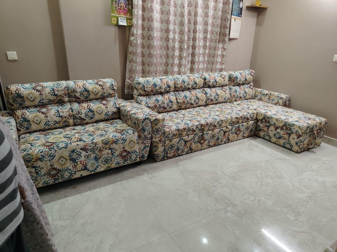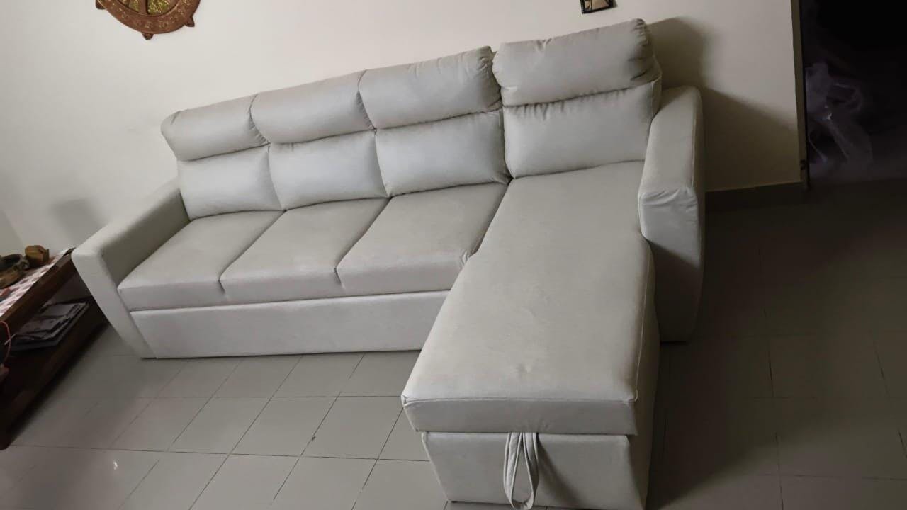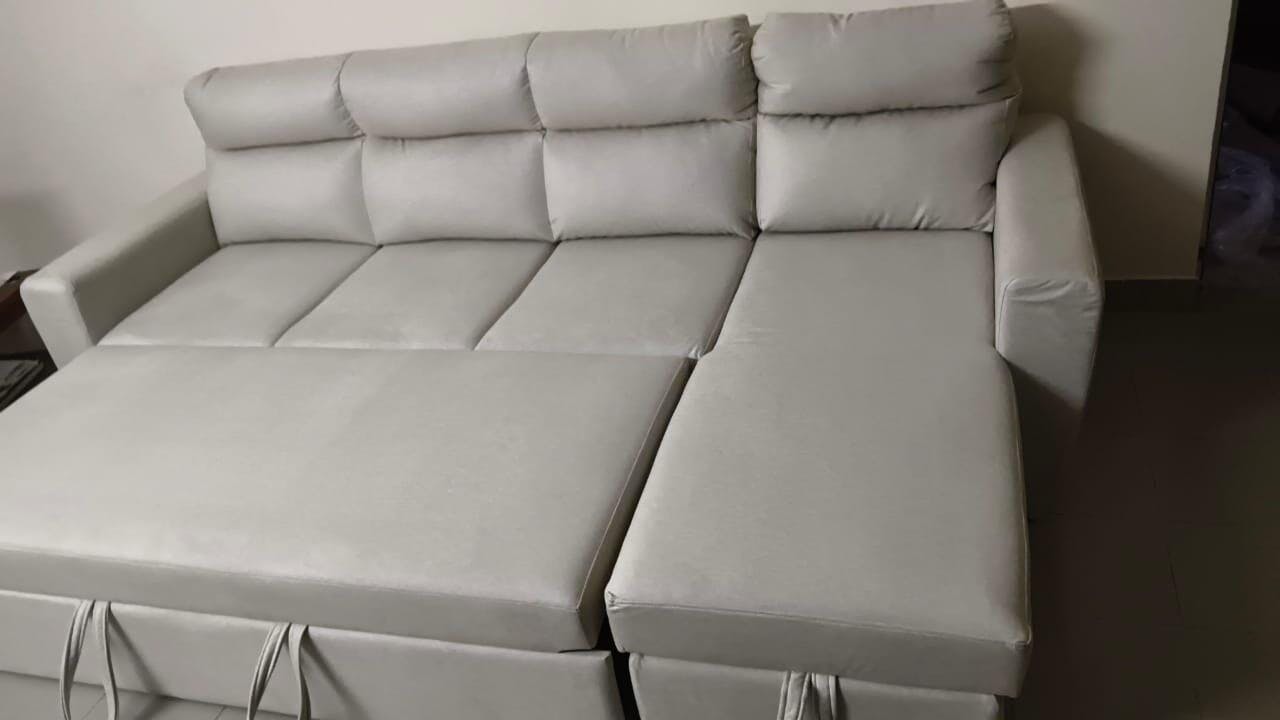 This sofa cum bed is a fantastic combination of style, comfort, and practicality. The elegant light-colored fabric gives it a clean and modern look that brightens up the room beautifully. As a sofa, it offers excellent seating comfort with well-padded cushions and supportive backrests. The conversion into a bed is smooth and easy, providing a spacious and comfortable sleeping surface—perfect for guests or everyday use. The built-in storage is a great bonus, helping keep the space neat and organized. Solid build quality, smart design, and versatile functionality make this a truly value-for-money piece. Highly recommended for modern homes.