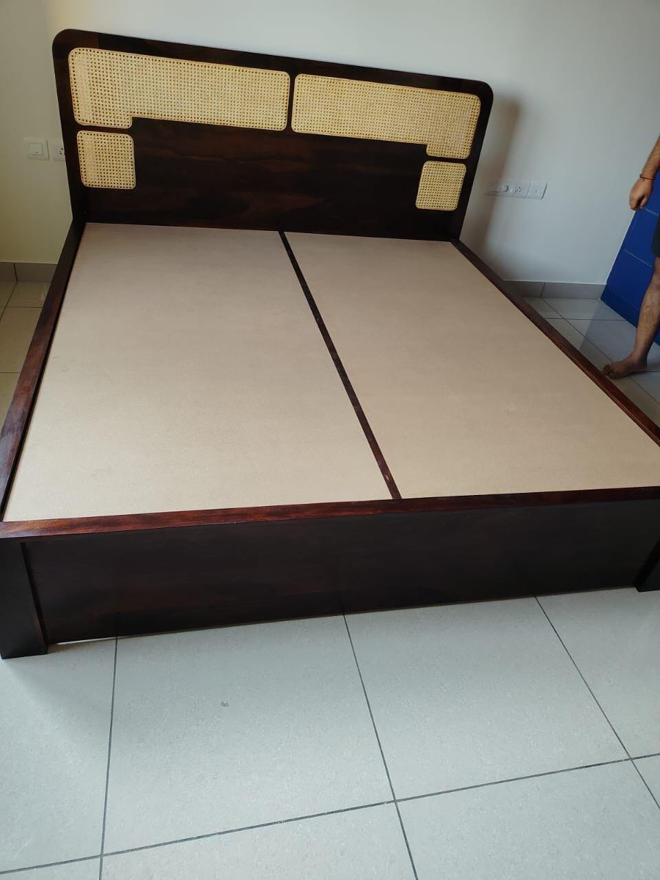 Design: Warm-toned Sheesham wood with rounded headboard edges and cane accents