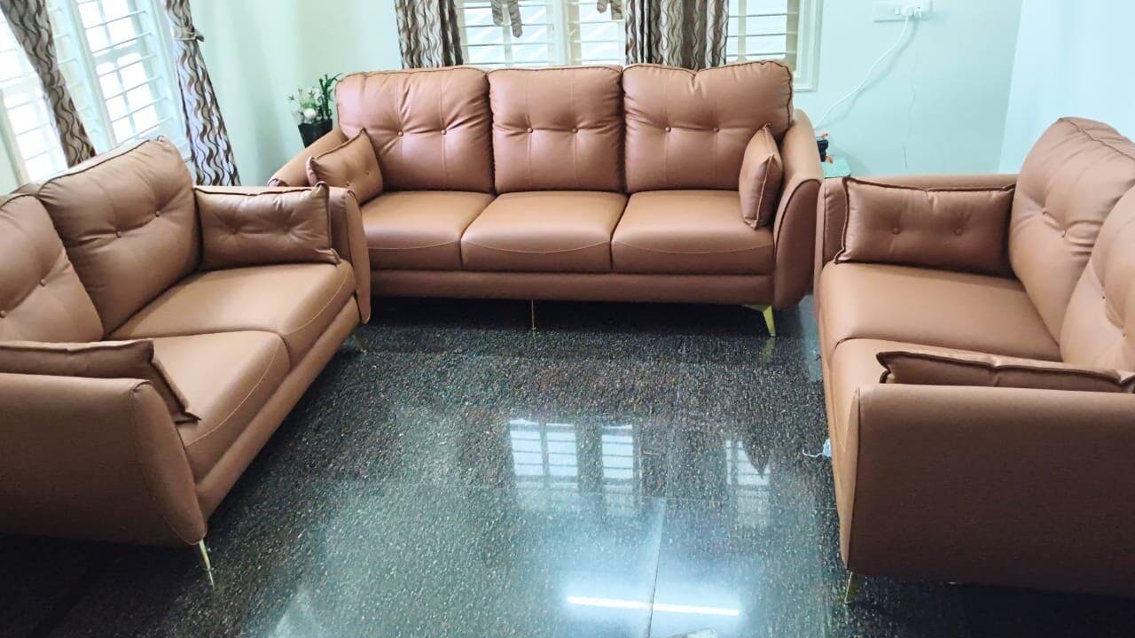 This sofa set looks elegant and luxurious, with a rich color and well-cushioned seats that offer excellent comfort. The design feels modern yet cozy, making it perfect for family gatherings and everyday relaxation. The build quality appears strong and durable, adding a premium touch to the living room.