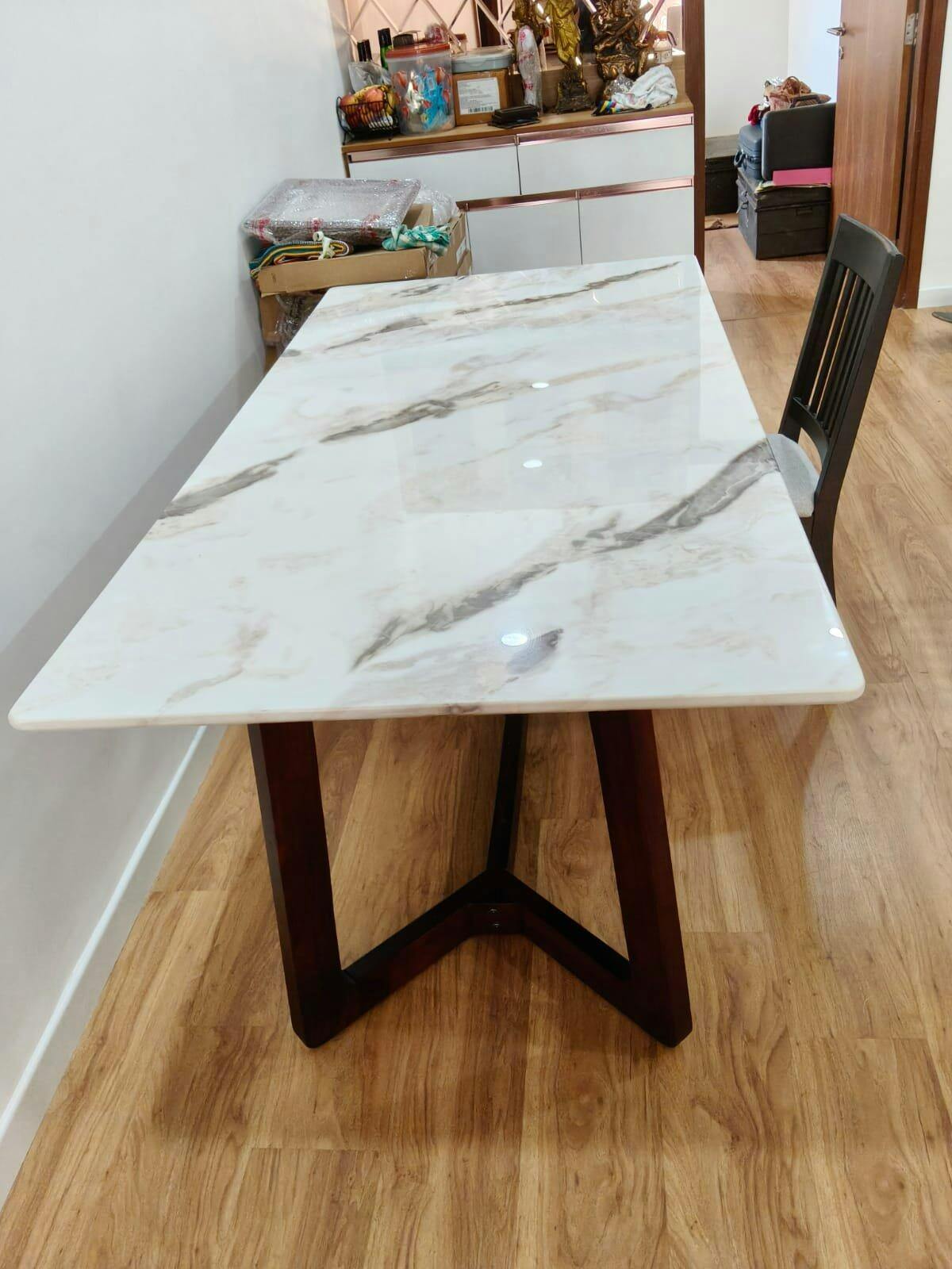 Vetra Compact Dining Table with White Engineered Marble Top - 6 Seater