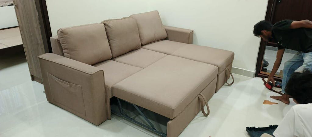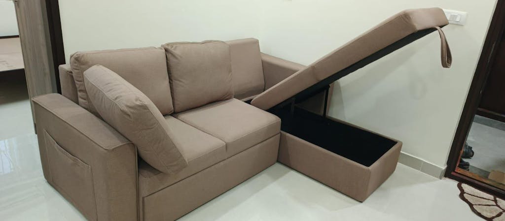 • Design: A contemporary L-shaped sofa cum bed with a streamlined silhouette and well-defined edges