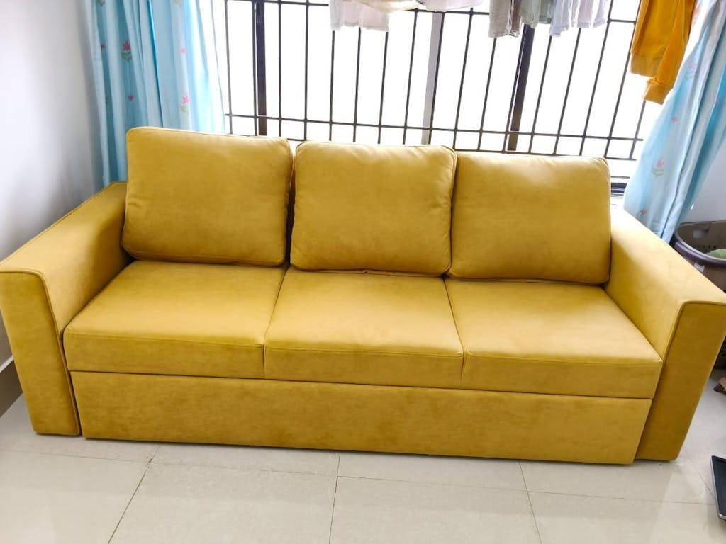 Melaka Sofa 3 Seater Sofa Cum Bed - Pull out Type Mustard Yellow