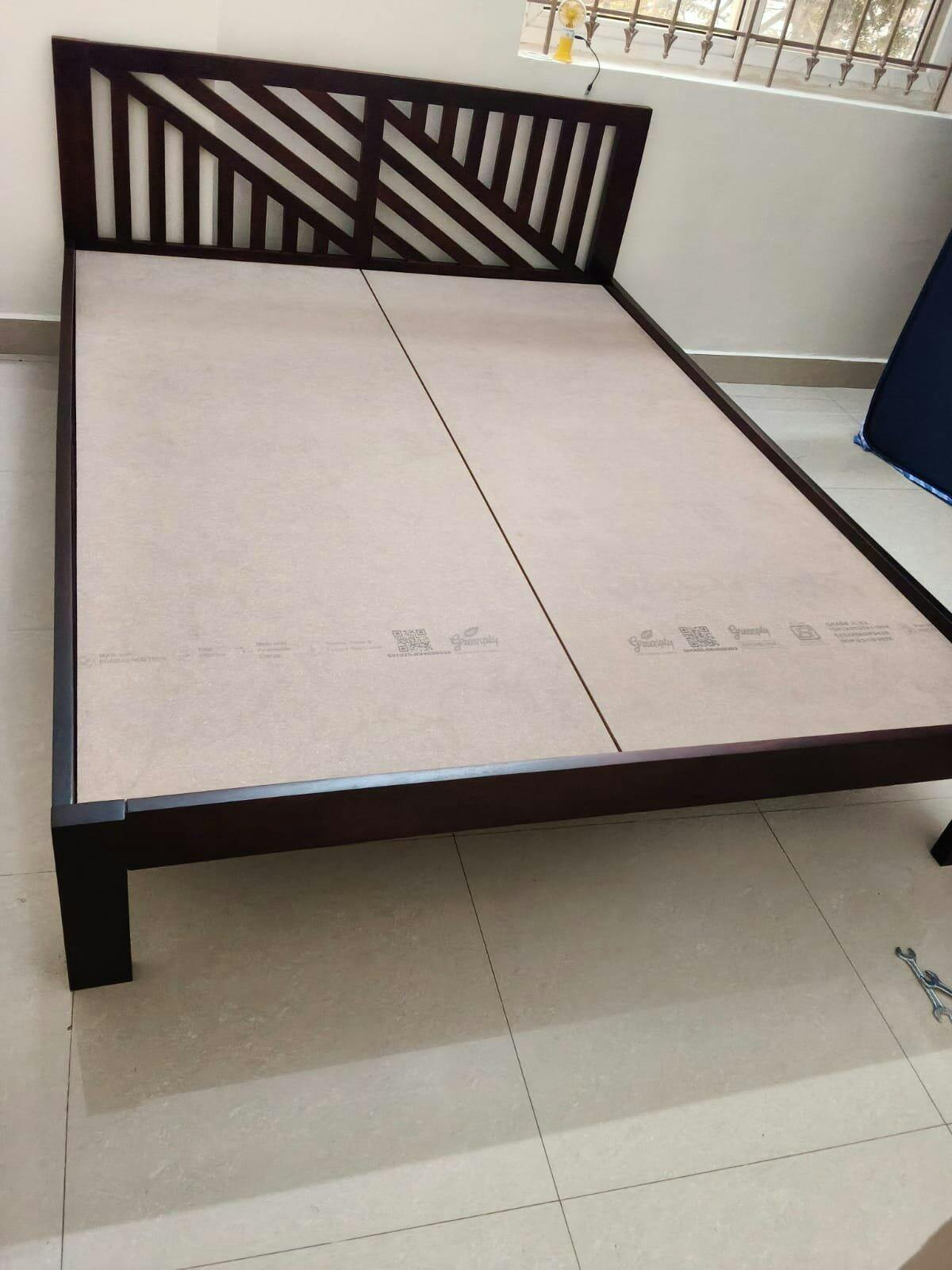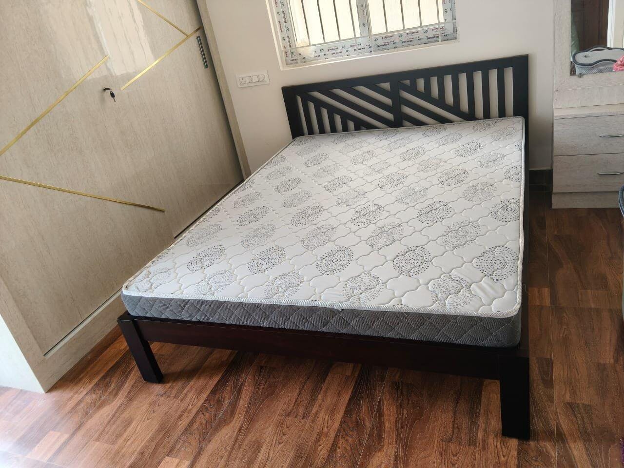 This queen-size wooden bed is expertly crafted with a focus on detail and long-lasting durability. Its clean, minimalist design adds timeless elegance to any bedroom, while the strong construction provides lasting comfort and support for years of peaceful, rejuvenating sleep.