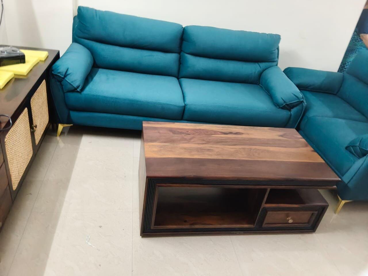 This premium wooden coffee table features a sleek finish and a smart, space-efficient design. Crafted for long-lasting durability, it adds a refined modern touch to your living space.