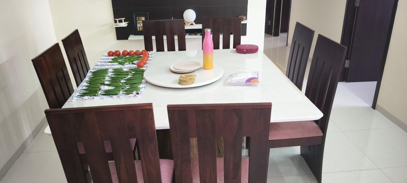 Delighted with this 6-seater dining set! The rich wooden finish and graceful design add warmth and charm to every meal, making it a stunning centerpiece that elevates everyday dining.