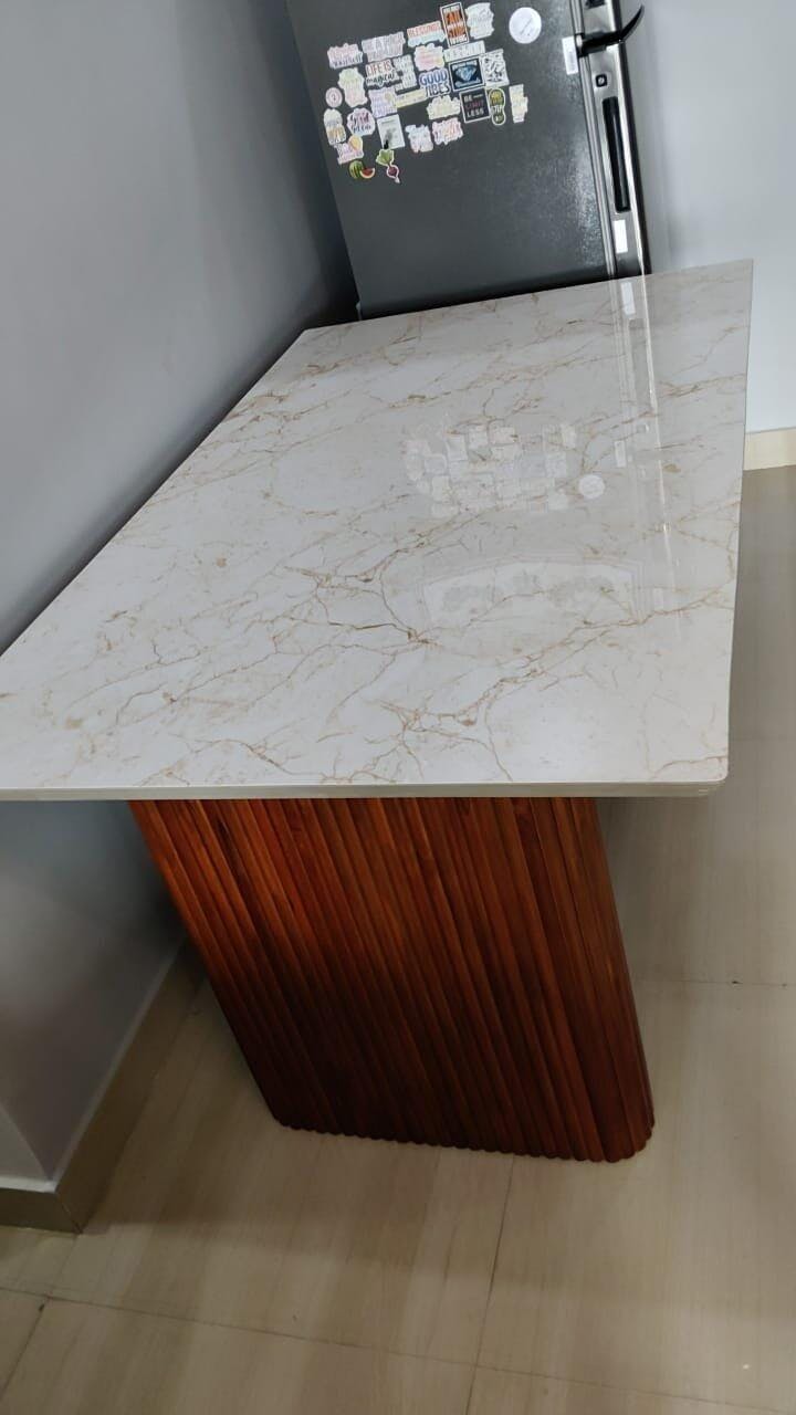 Design: Rectangular dining table with Chamfered Double patti edges, and rounded corners for safety