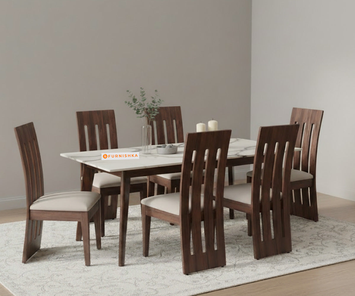 Vedh(Agar) 6 Seater Dining Sets Compact Indian Marble Top