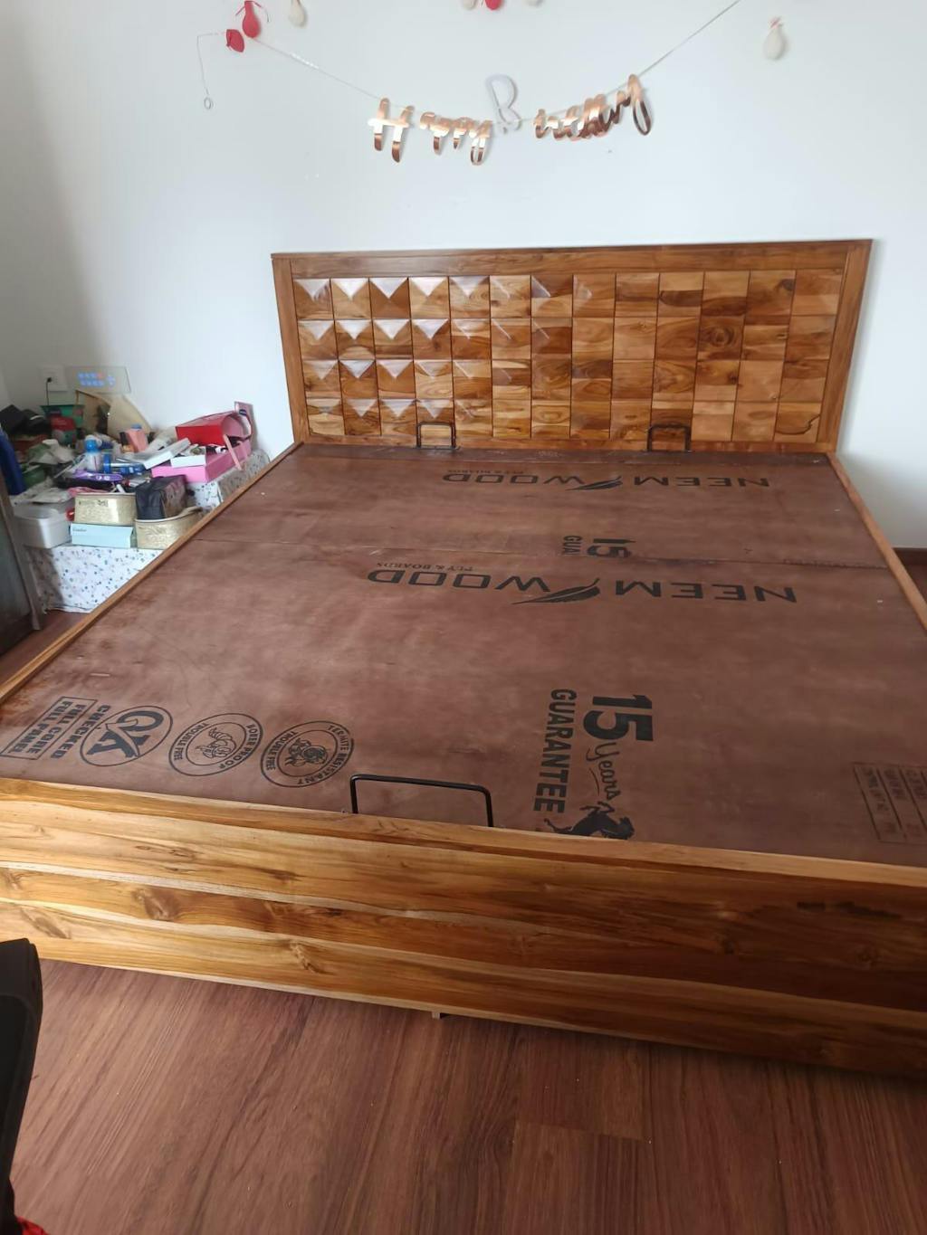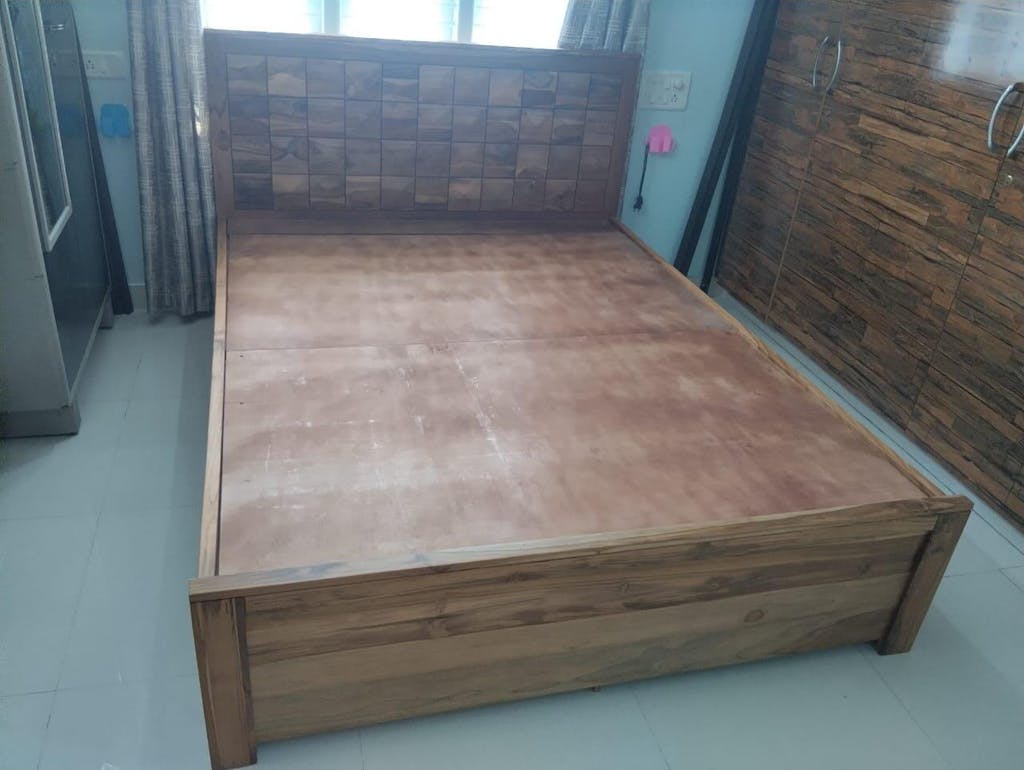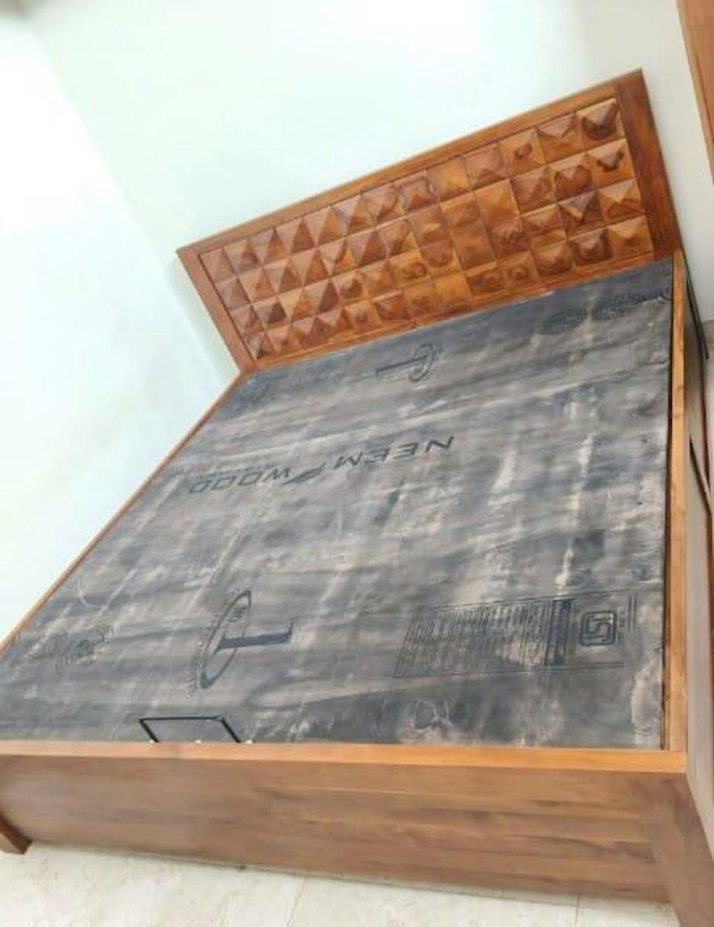 The Teeva Bed features golden real teak wood with a striking 3D pattern and a lifetime termite warranty. Designed for stable, noise-free rest, with hydraulic storage. Available in king and queen sizes.
