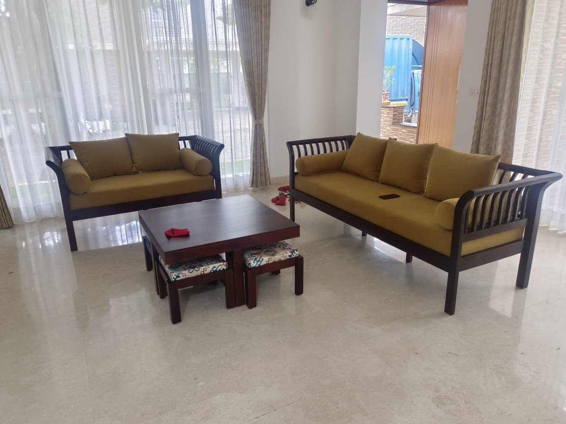 A beautifully crafted wooden sofa set that adds a warm, stylish charm to the room. The rich finish, comfortable cushions, and exceptional craftsmanship create the perfect blend of traditional elegance and modern comfort.