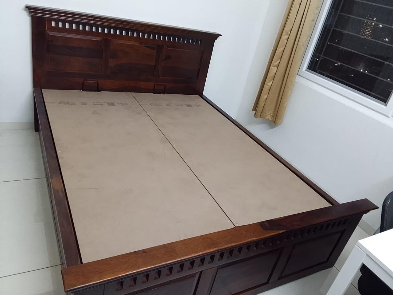 Adi Sheesham Wood Bed with Hydraulic Storage - King Size