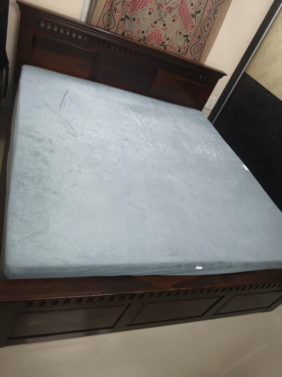 This king-size bed embodies modern luxury with its elegant wooden finish and refined design. Featuring a high-quality hydraulic storage system that lifts effortlessly to reveal ample space, it perfectly blends spacious comfort, contemporary style, and exceptional functionality.