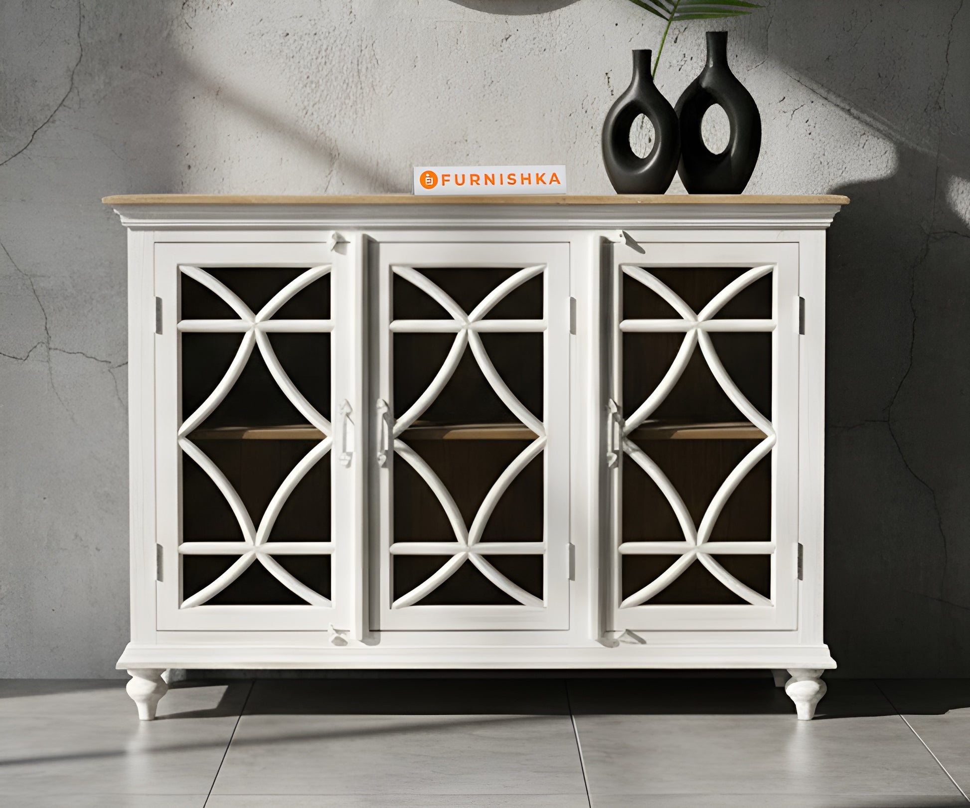 Cross Arch Glass with 3 shutters Door 3 drawers Reclaimed