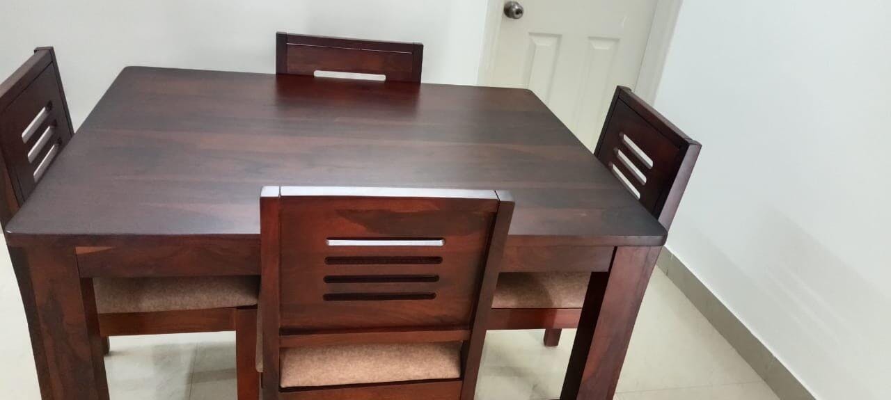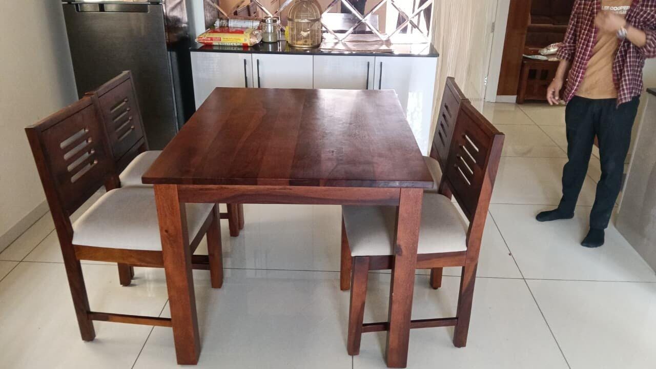 Daria Sheesham Wood 4 Seater Dining Sets With Cushion Top Chairs