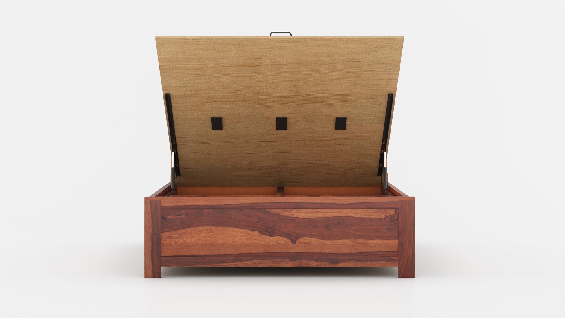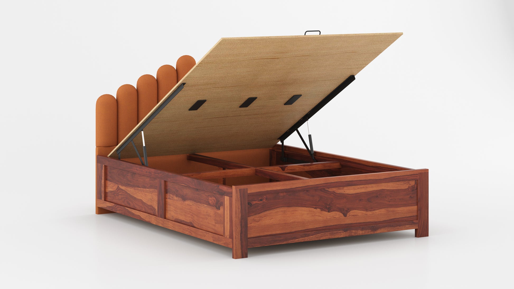 Dora Sheesham Wood bed with Upholstered headboard Hydraulic Storage King Size