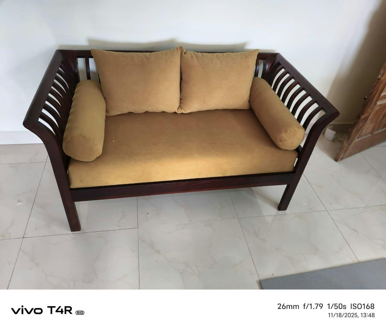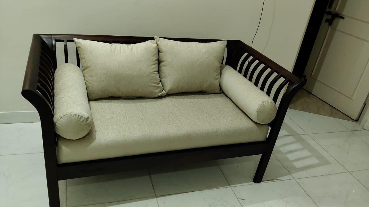 Such a lovely wooden 2-seater sofa. The elegant frame design and soft beige cushions create the perfect blend of style and comfort. The craftsmanship is impressive, and the refined finish adds a classy touch to any space. Truly delighted with this beautiful piece.