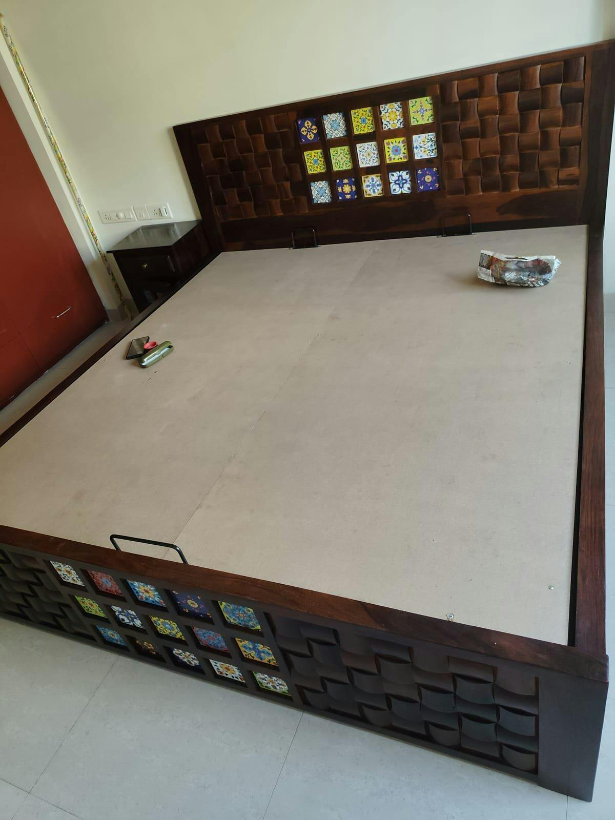 This bed stands out with its rich solid wood finish and uniquely handcrafted headboard design. Built with strong, durable construction, it ensures long-lasting quality, while the elegant detailing adds warmth and a luxurious feel to the bedroom. Offering excellent support and comfort, it is ideal for a restful night’s sleep.