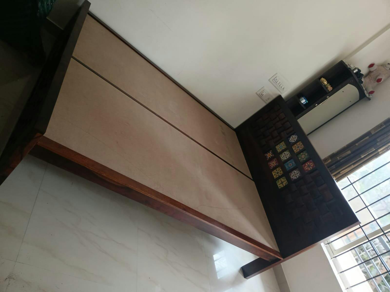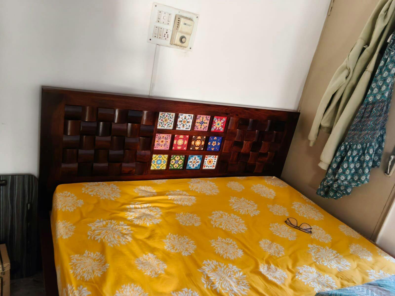 This queen-size wooden bed frame showcases solid construction, fine craftsmanship, and a timeless design. Engineered for noiseless comfort, its premium finish brings a serene and elegant feel to the bedroom.