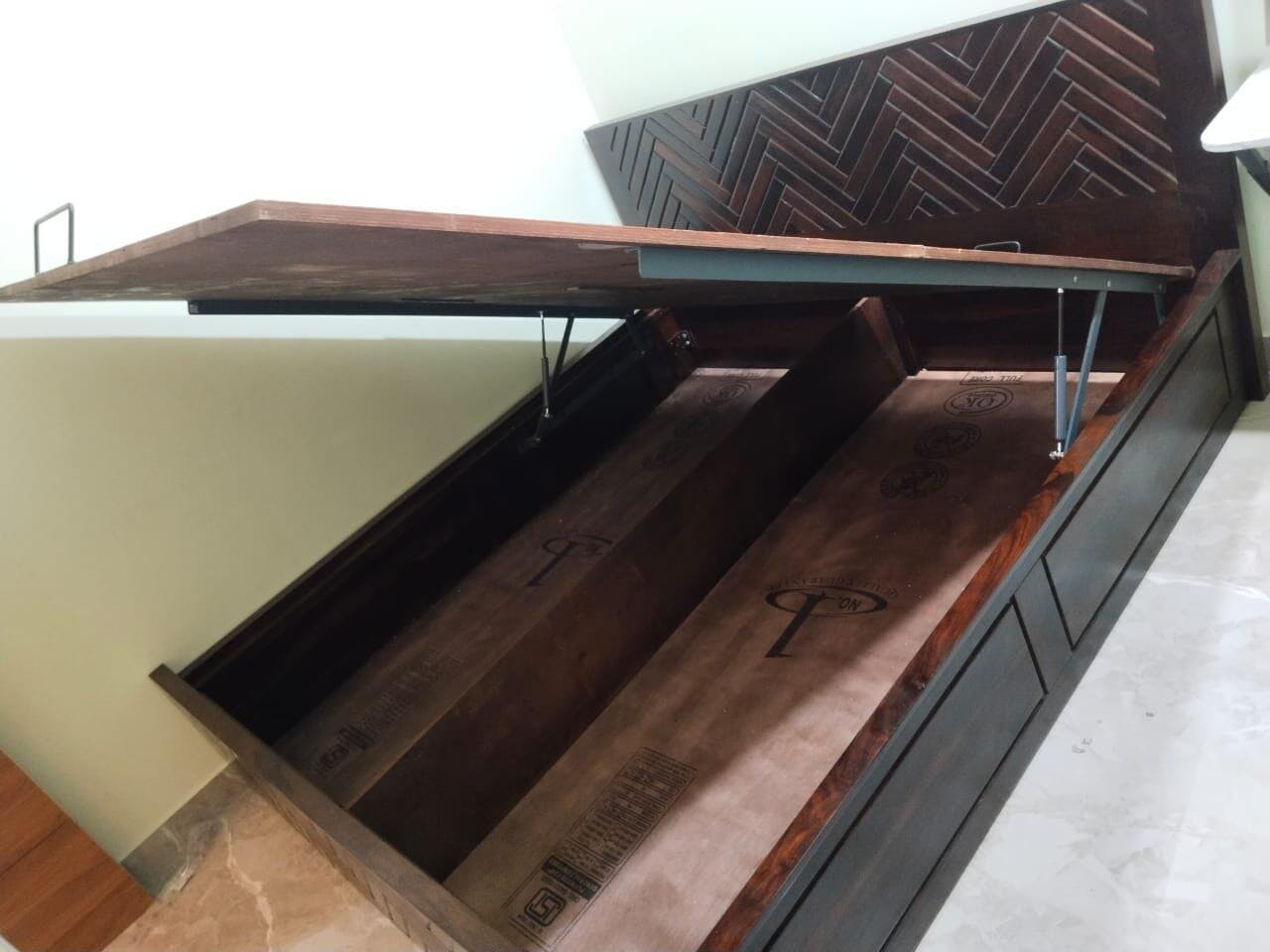 This is a finely crafted wooden bed that combines exceptional strength with refined elegance. Designed as a king-size bed with hydraulic storage, it provides generous comfort, intelligent functionality, and enhances the overall appeal of your bedroom.