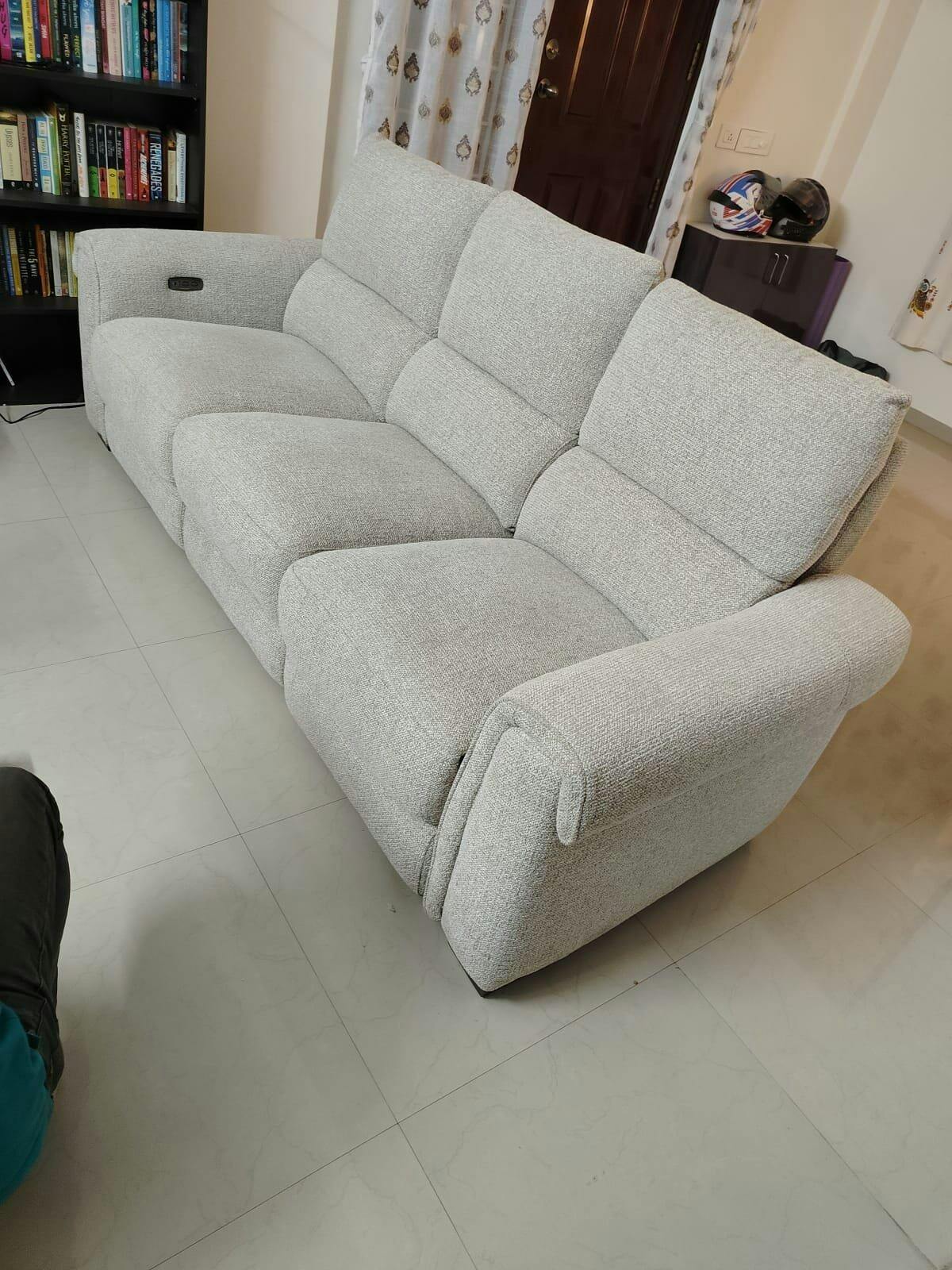 Excellent quality recliner sofa with very soft cushioning and premium fabric. Extremely comfortable, stylish, and perfect for relaxing after a long day.
