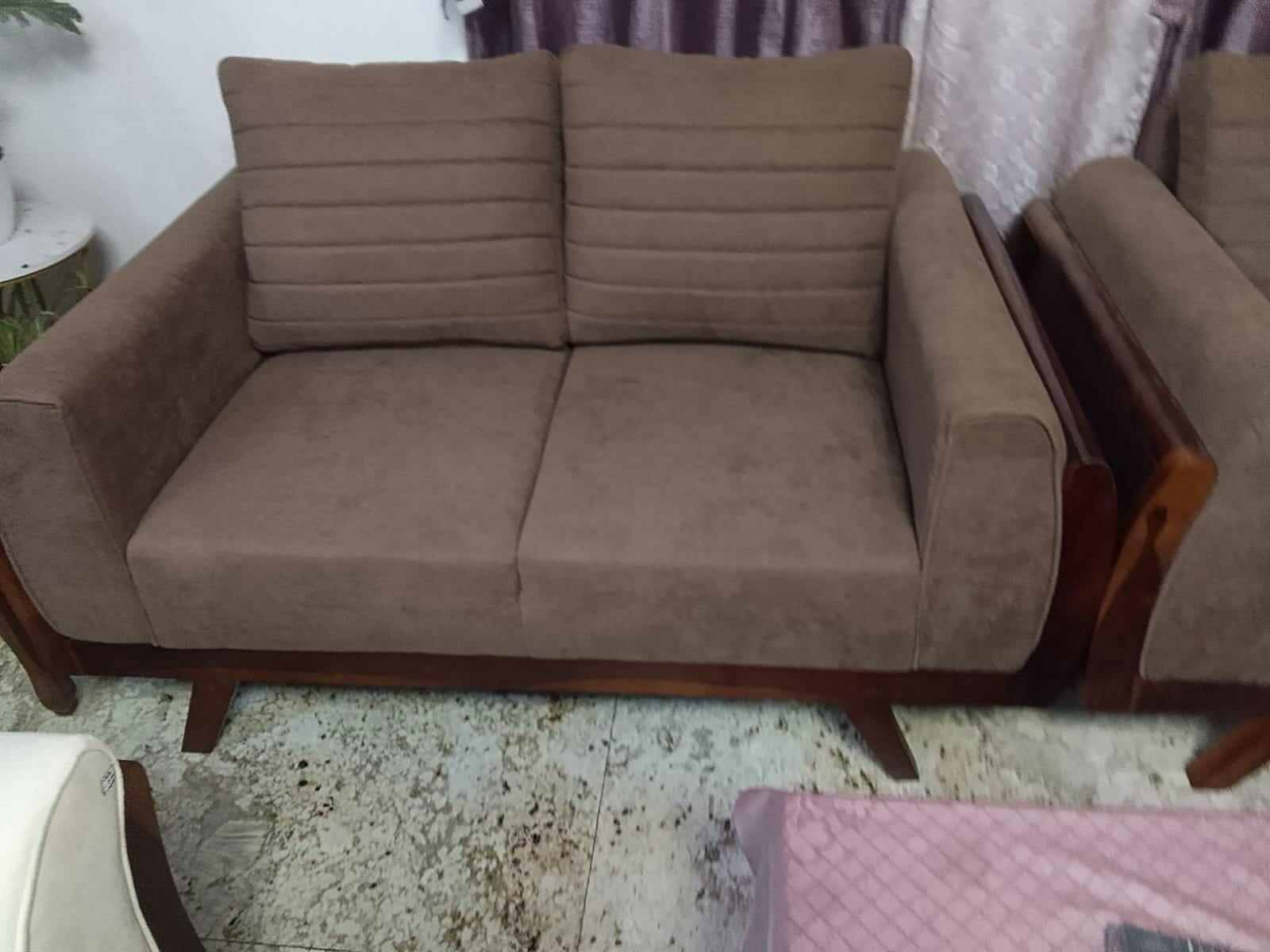 Elevate your living space with the Sahara 3+2 Seater Wooden Sofa Set. Crafted from Sheesham wood, it exudes timeless elegance with its natural grain. The sleek armrest frame and clean-lined backrest cushions enhance its modern appeal, making it perfect for any contemporary interior.
