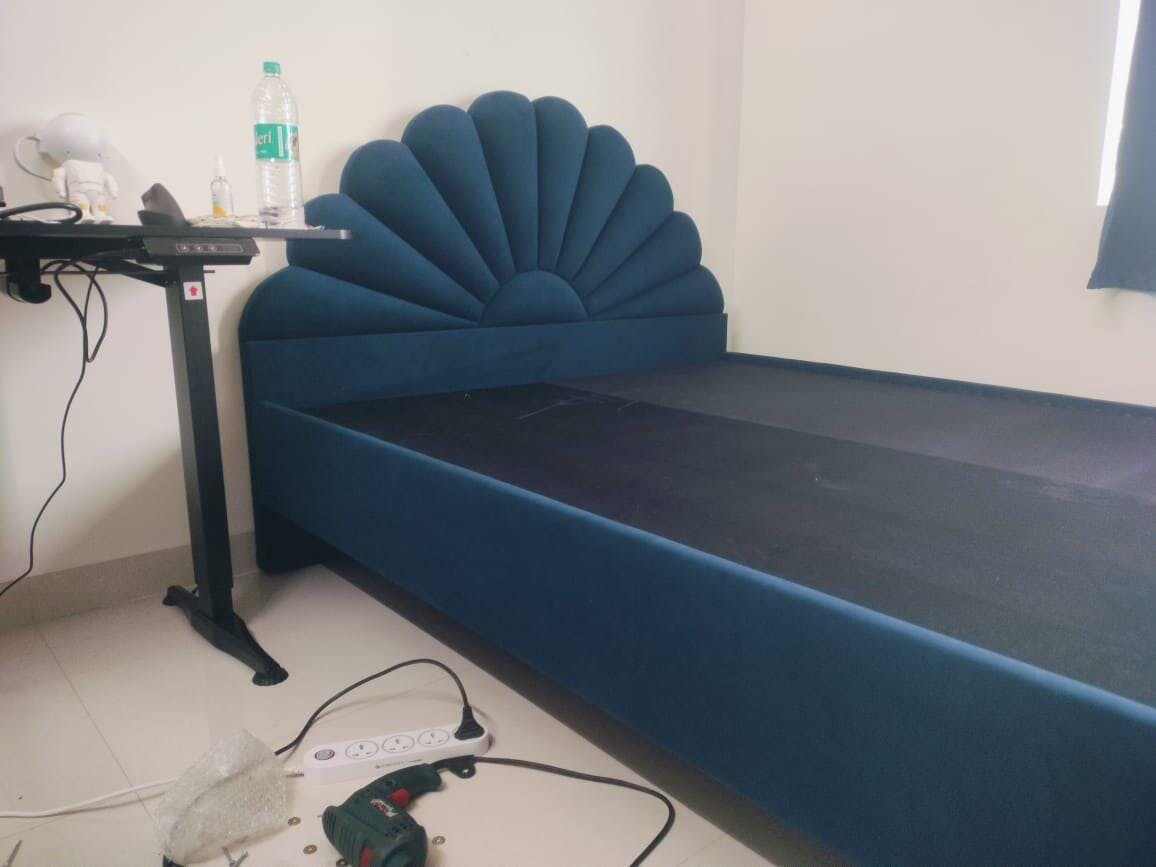 The Furnishka bed looks exceptionally stylish with its unique scallop-shaped upholstered headboard and premium velvet finish. The rich blue color adds a luxurious touch to the room, while the build quality appears sturdy and well-crafted. A perfect blend of elegance and comfort—truly impressed with Furnishka’s design and workmanship.