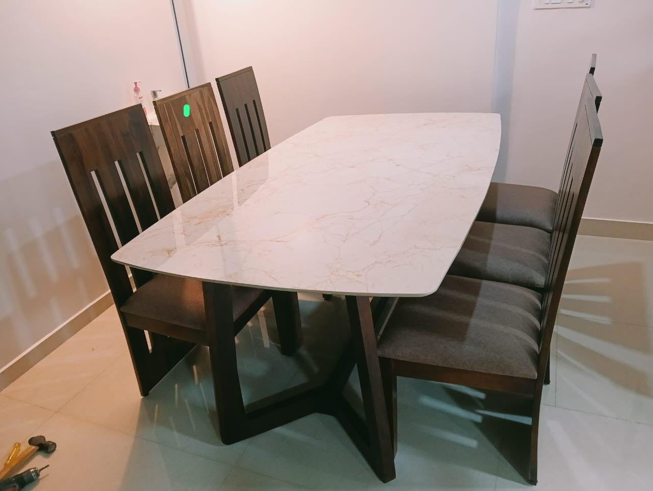 Delighted with this 6-seater dining set! The rich wooden finish and graceful design add warmth and charm to every meal, making it a stunning centerpiece that elevates everyday dining.