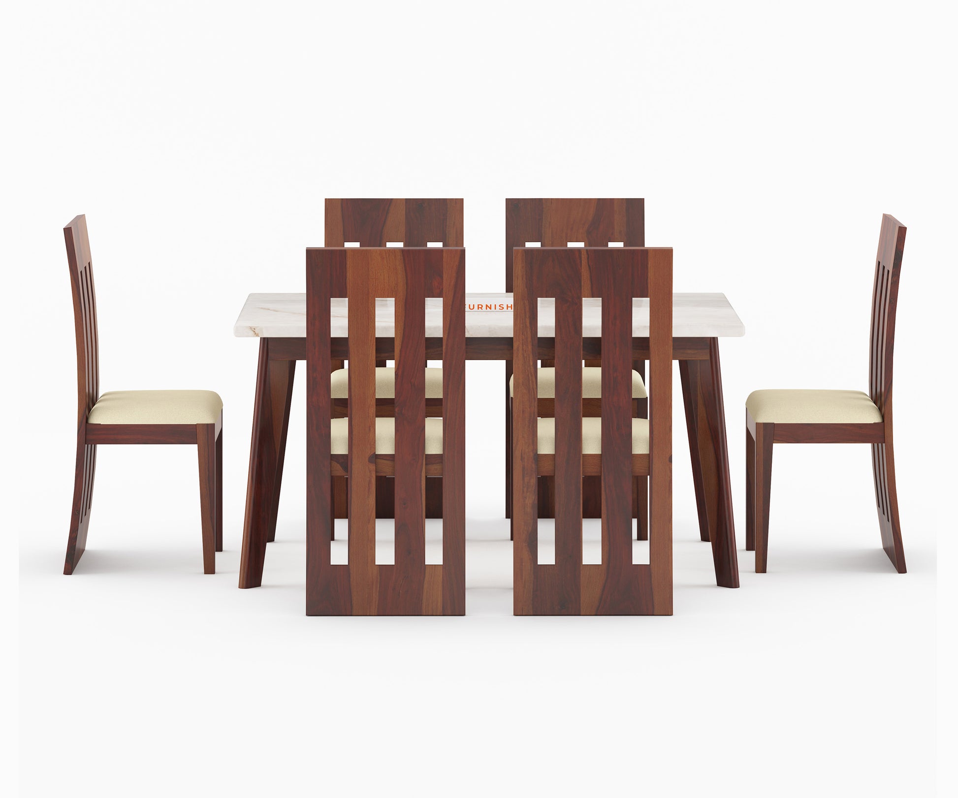 Vedha 6 Seater Indian Marble Top Dining Table with Sheesham Wood Legs