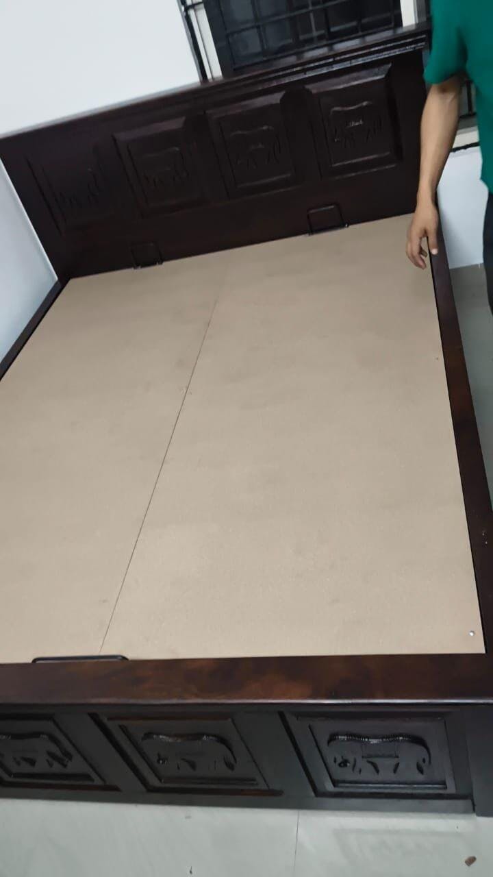 The bed looks beautifully crafted with a rich wooden finish and elegant carved detailing. Its sturdy structure and premium design instantly elevate the room’s look. Truly a perfect blend of durability and style—excellent choice.