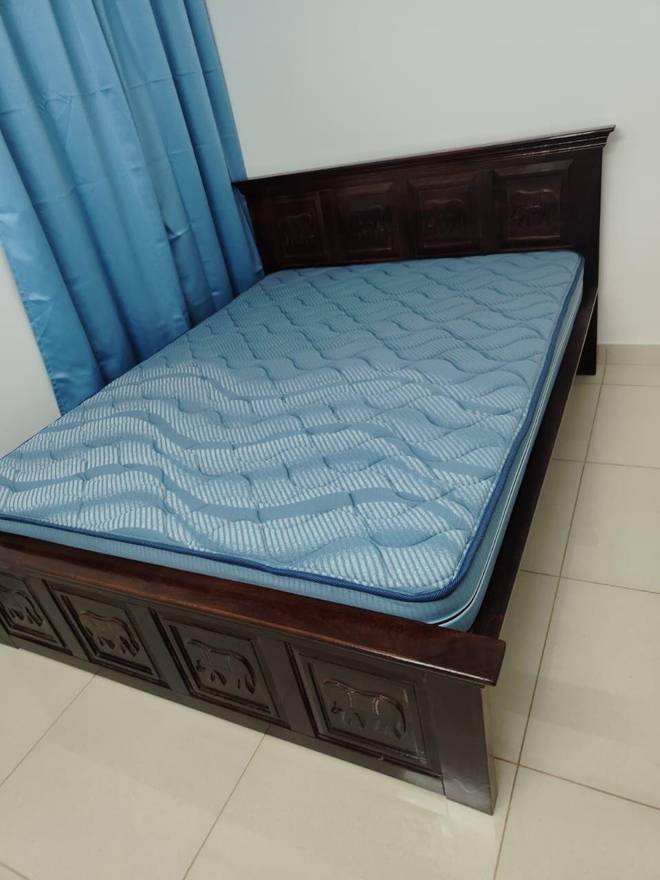 This queen-size wooden bed frame stands out for its solid construction, fine craftsmanship, and timeless appeal. Designed with noiseless support and a premium finish, it is an excellent choice for creating a calm, comfortable, and elegant bedroom.